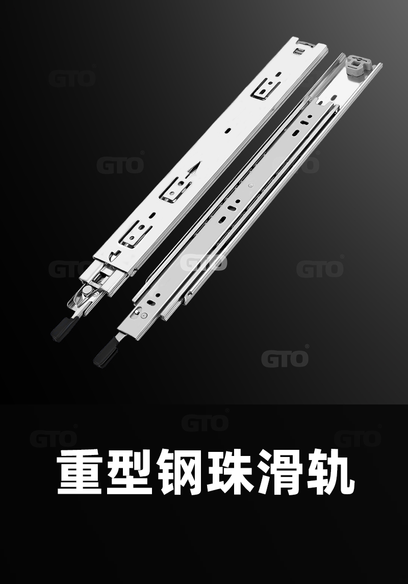 重型滑轨是专为承载高负荷、应对频繁操作而设计的滑动轨道系统。其结构更坚固,材质更厚实,承重范围通常从几十公斤到几百公斤不等。常见的规格包括76mm宽、53mm宽、51mm宽等。这类滑轨广泛应用于自动化设备、大型具柜、机械抽屉等场景,是实现稳定滑动与安全承载的重要组件。
