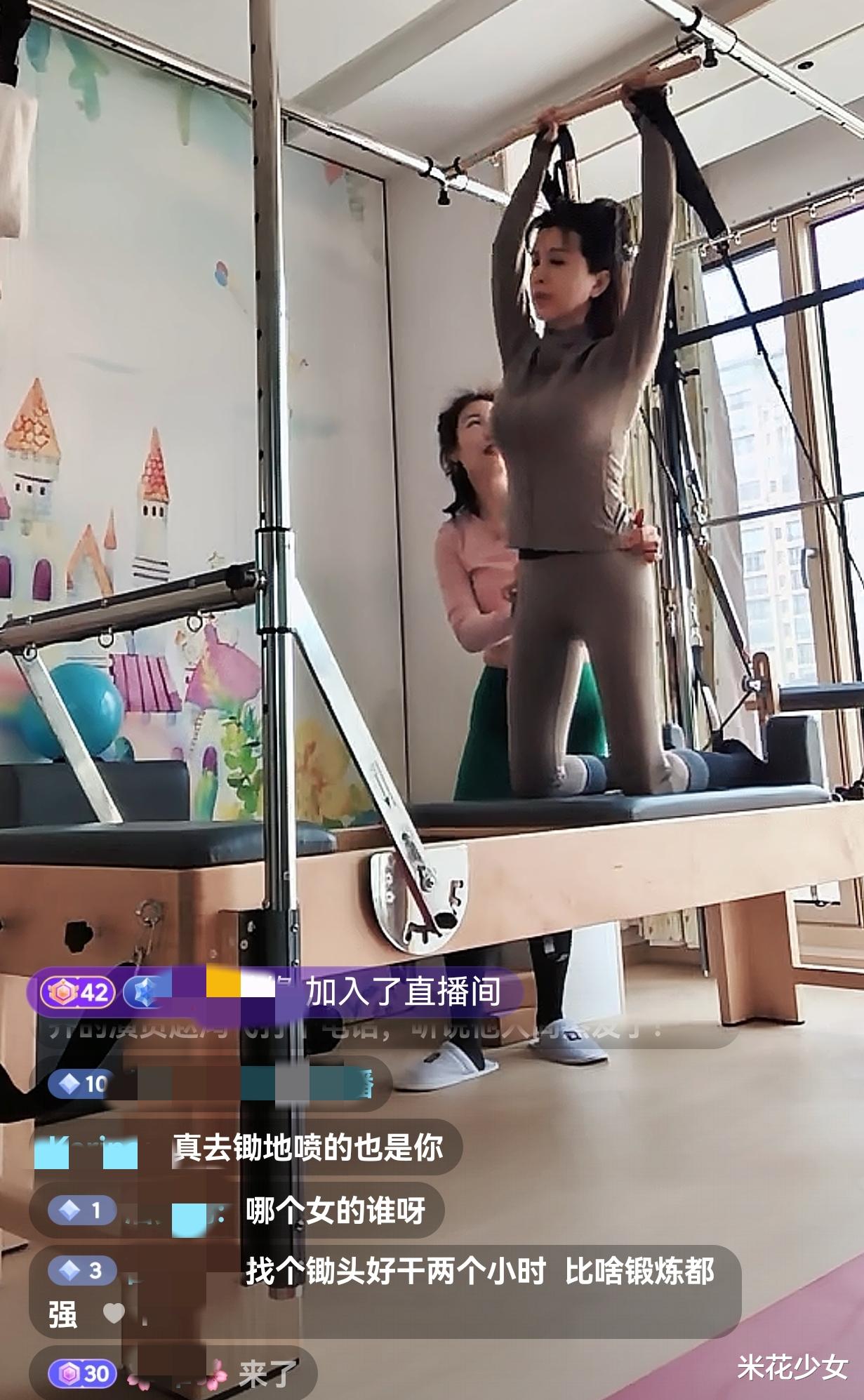 女星金巧巧就在直播间中练习瑜伽,全程记录自己的健身过程。