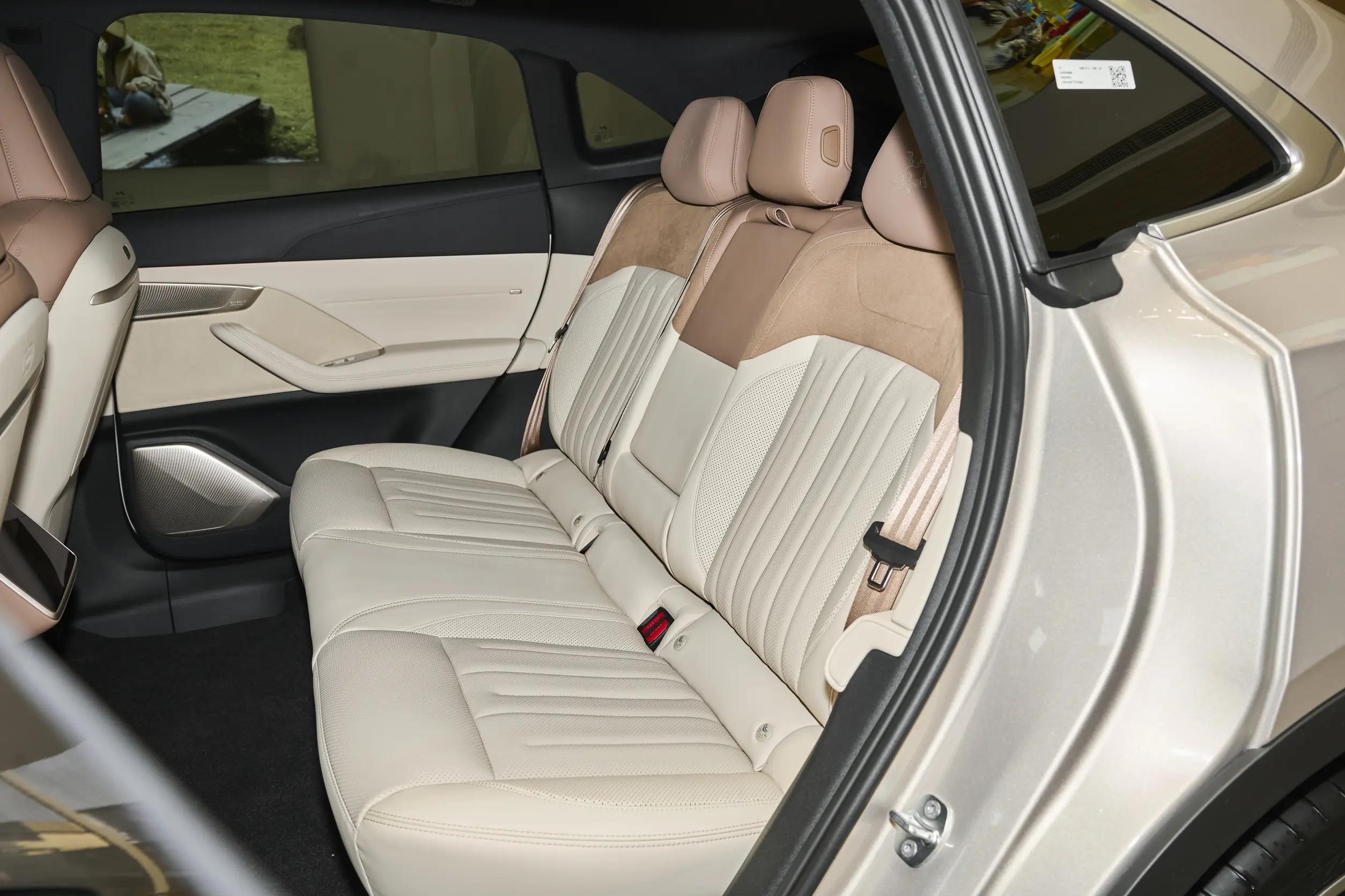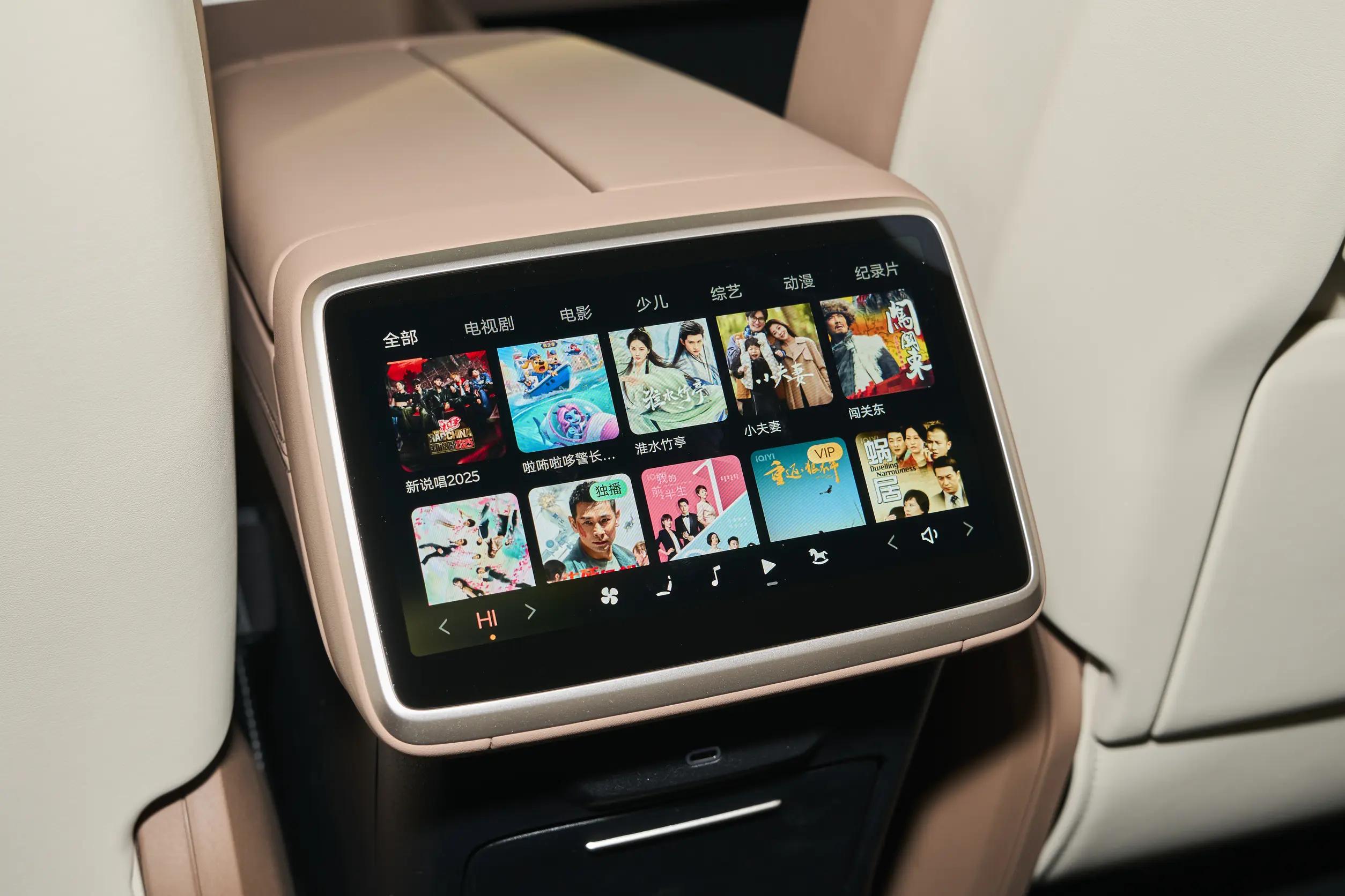 车内还有一些很实用的小设计,比如后排右侧的折叠小桌板,宽度有370mm,能承重12kg,孩子可以在上面看平板、吃零食,我偶尔也能放笔记本电脑处理工作,特别方便。1.9㎡的全景天幕,加上全方位防晒玻璃,视野很开阔,坐在车里能看到外面的风景,而且防晒效果也不错,夏天不用怕晒。18扬声器的杜比全景声音响,听音乐、看电影的时候,沉浸感很强,加上环舱光瀑式氛围灯,晚上开车的时候,氛围特别好。