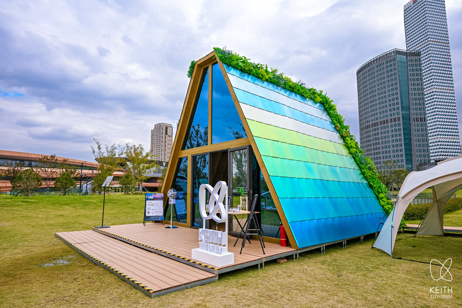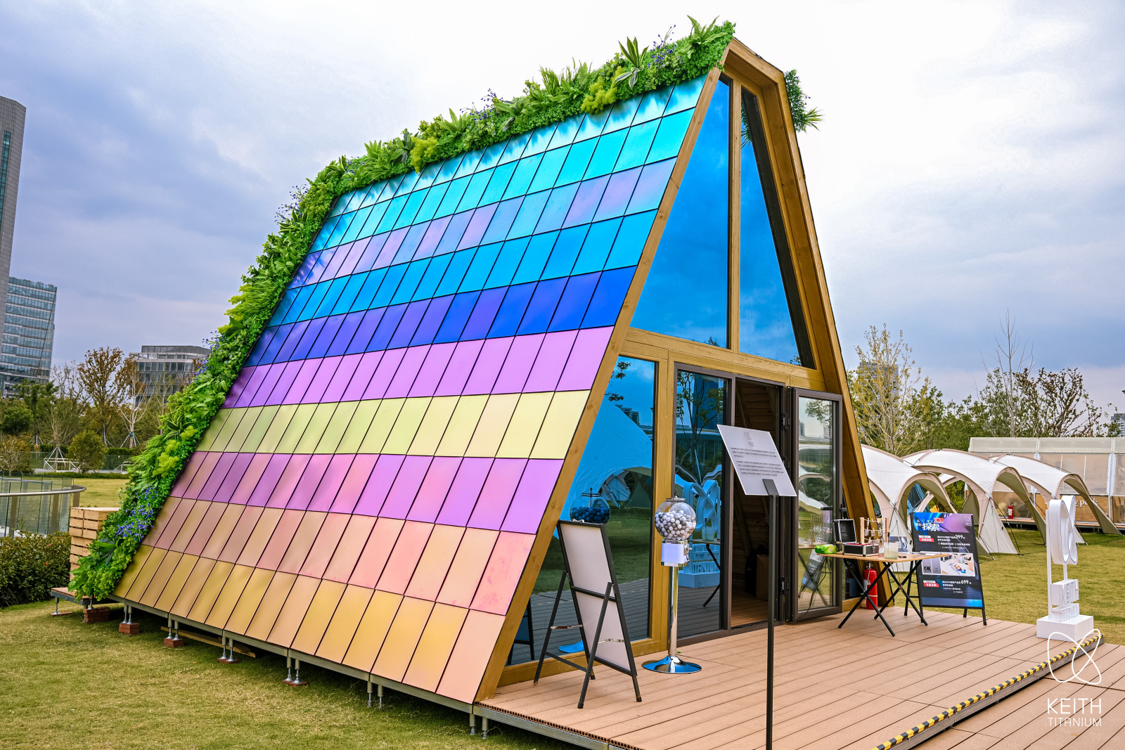 也正是这项核心色彩工艺,促成了KEITH铠斯从耐用消费品向建筑领域的延伸。它为“彩色钛屋”快闪的落成打开了全新思路和创意——为建筑的外立面打造数百片不同色彩的“彩色钛瓦”,在保持结构稳定性的同时,以极具视觉张力的效果,刷新公众对钛单一色彩的认知。