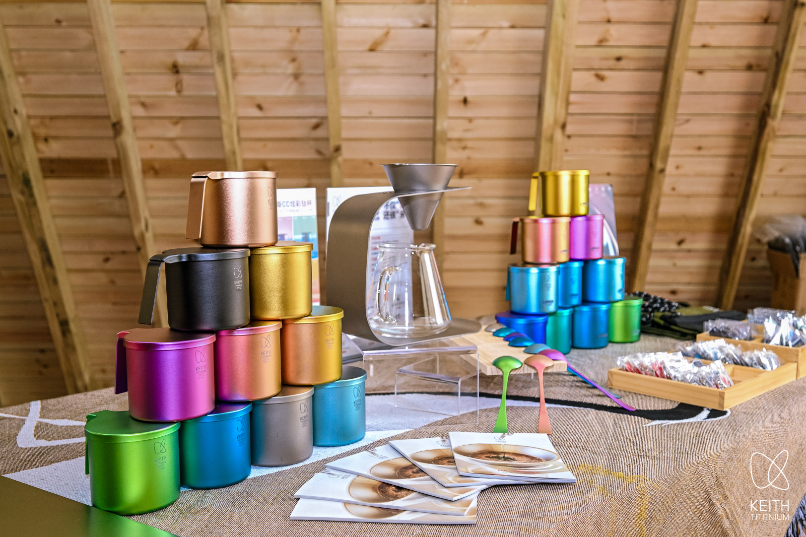 “彩色钛屋”快闪内部空间,通过分区产品陈列,参观者可以全面了解KEITH铠斯钛装备从“户外核心场景”到“运动生活”乃至“咖啡领域”的多元探索。