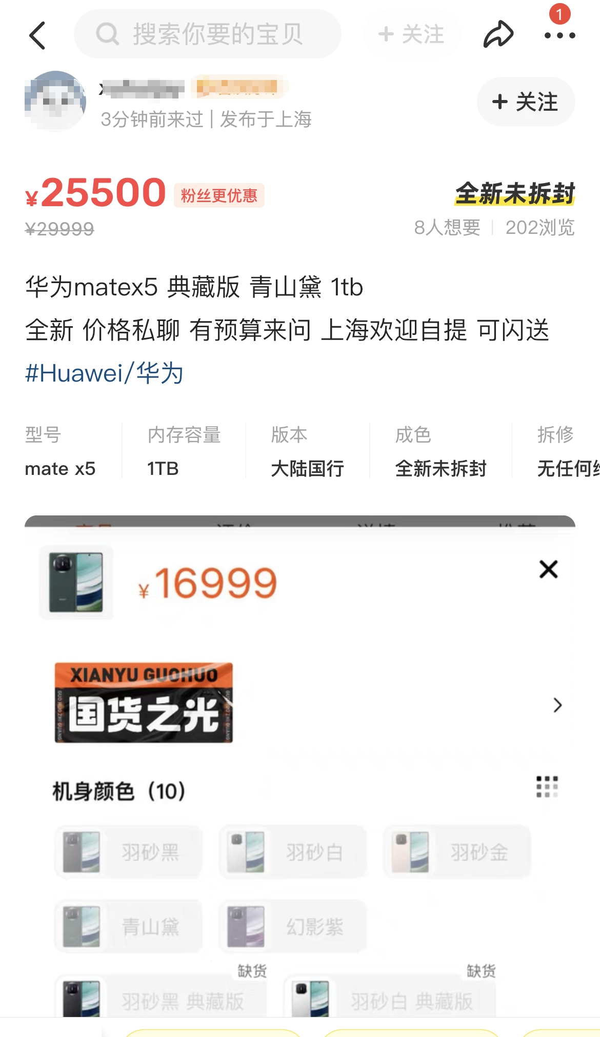 然而,你想原价买还很有点难度,虽然每天都可以去华为商城抢购,但真正抢到的花粉寥寥无几,而活跃在海鲜市场的MateX5不计其数,最高溢价1W元才能上车MateX5。