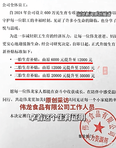 之前看各种火遍全平台的信息都是别的地方,别的企业,今天看到一条济宁本地的企业通知,但是还没有大火,我觉得不正常,是一条什么新闻呢?关于生育补贴的,济宁伟龙食品发布告全体员工信,表示公司设立了600万的生育专项补贴。