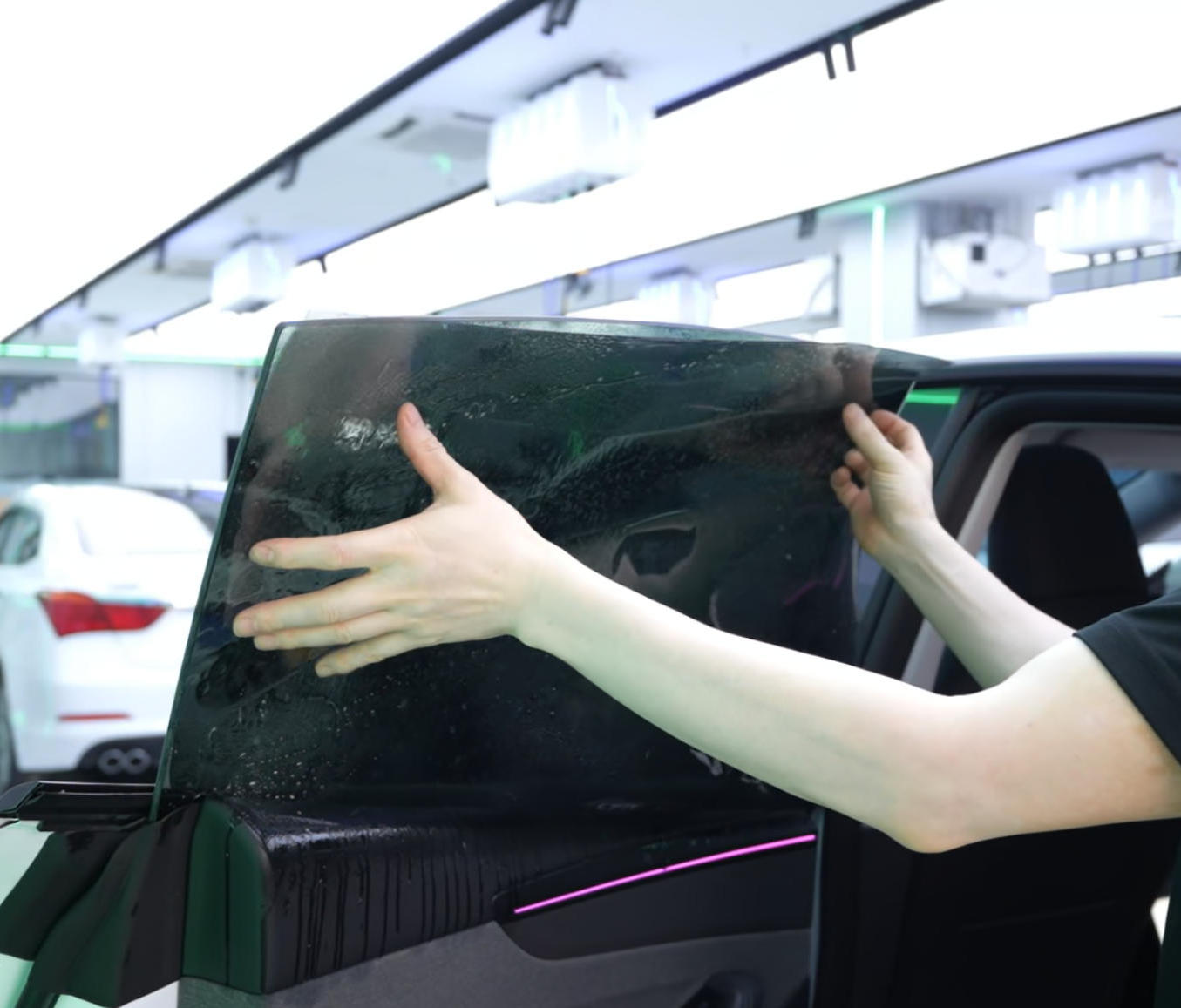 真实案例:一位比亚迪宋ProDM车主在选择洛盾鸿运紫后评价:原本担心紫色会影响视线,结果发现完全多余。大太阳下开车,手伸到窗外和窗内完全是两个世界,那种炙烤感的消除非常明显。而且这个颜色让车子看起来更显档次,不像普通黑膜那么沉闷。