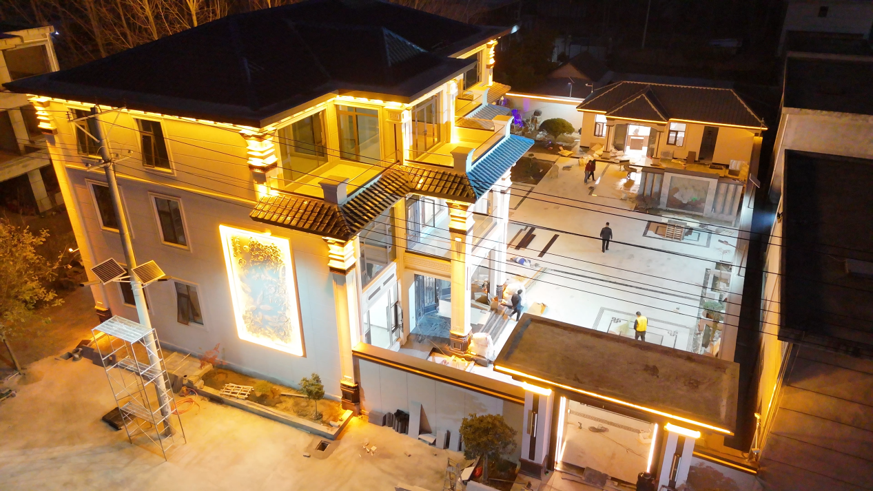 山东临沂兰陵县解老板家高端别墅,选用储福高定精雕铸铝悬浮门搭配门楼式庭院设计,成为家居入户的点睛之笔。作为家宅的主入户,它不仅是物理空间的第一道屏障,更被赋予了"纳福聚财"的美好寓意。(—————临沂门的产品亮点,如材质、工艺等————大尺寸双开悬浮门,宽度达到3米21,加厚不锈钢精铸铰链,单个承重可达200公斤以上,采用三层原生铝板制作而成,打造出悬浮视觉,四周真悬浮,搭配感应式迎宾灯带,让回家更有仪式感、安全感)门体与别墅建筑风格完美融合,既彰显了业主对品质生活的追求,更以高端材质与精湛工艺为家宅增添尊贵档次,让入户仪式感与财富气场双向拉满。