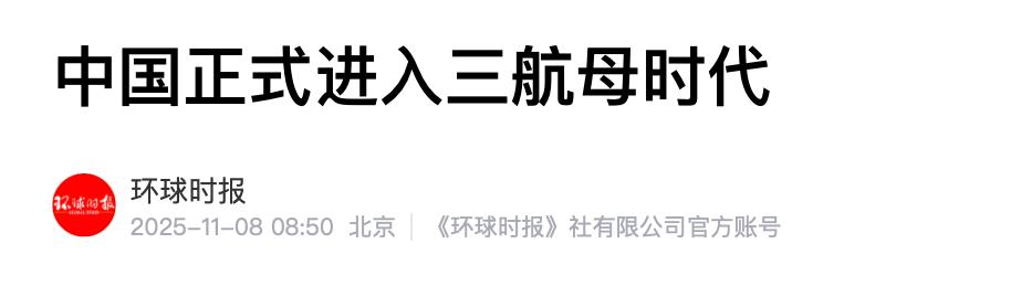 《环球时报》:中国正式进入三航母时代