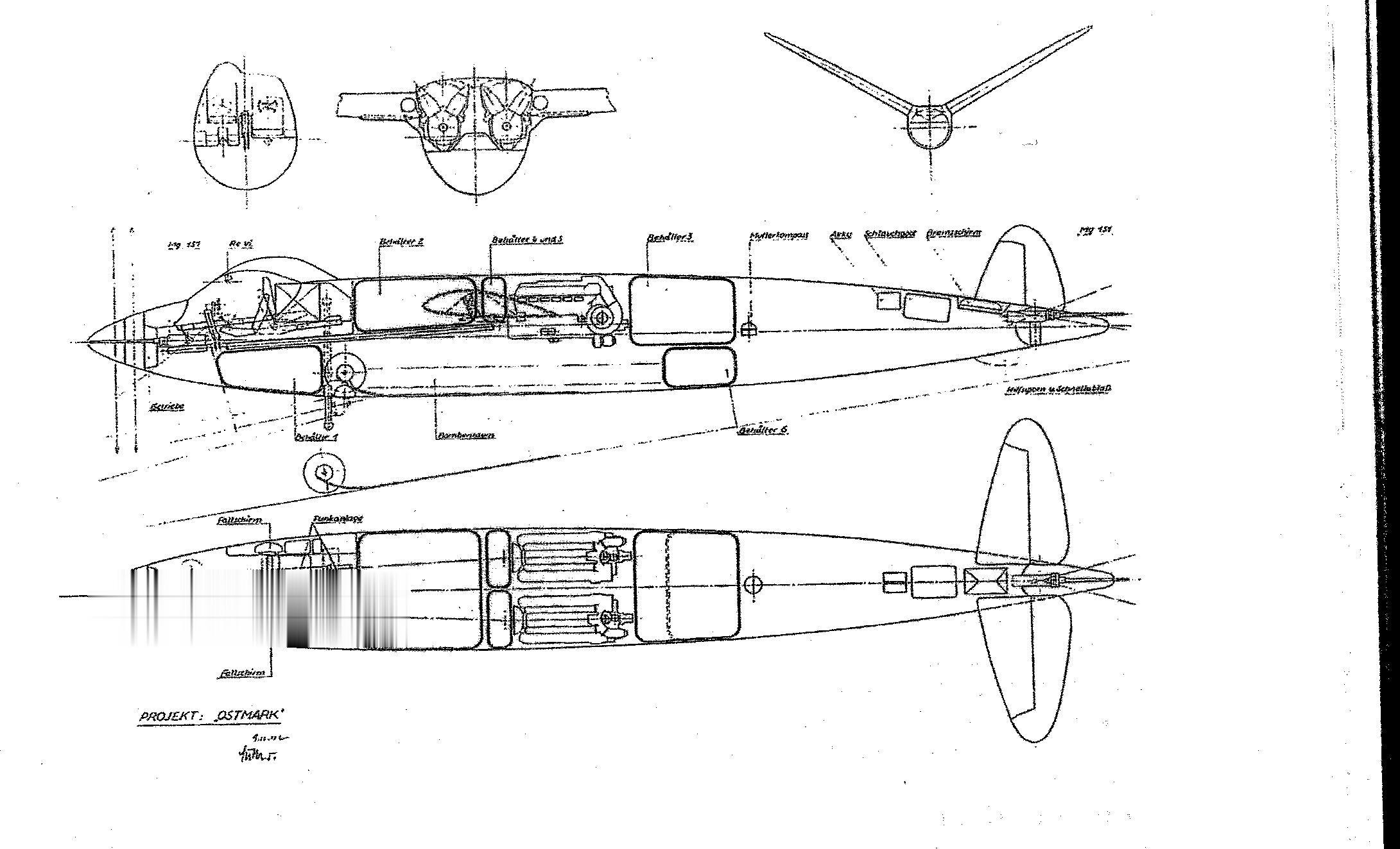 1942年12月9日,沃尔夫冈·胡特向RLM提交了代号为“奥斯马克”系列的一个项目(这个词又Ost = 东,Mark = 边界组成),这是一架全金属结构的三座双引擎远程地面攻击与特种飞机。胡特称其为:Fernzerstorer,“远程攻击机”。