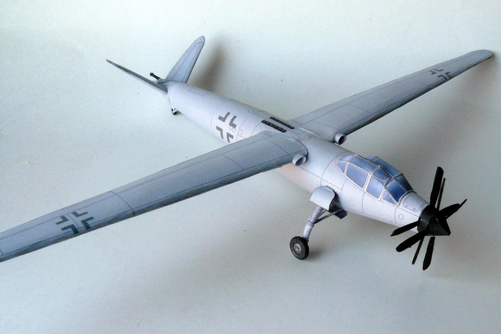 机身内部为一个长弹舱,可装载100公斤炸弹、BT1000鱼雷等弹药。机翼下舱内还装有用于攻击空中和地面目标的额外武器。根据DB 601发动机的尺寸,可大致计算出“奥斯马克远程攻击机”的几何参数,机身最大宽度1.8米,全长15.2米,水平高度3.72米,尾翼展4.84米。机翼根弦不超过1.5米,关于机翼的形状本文引用的模型采用了944年Hu 211侦察机的典型胡特式高展弦比翼,这个推测非常的合理。
