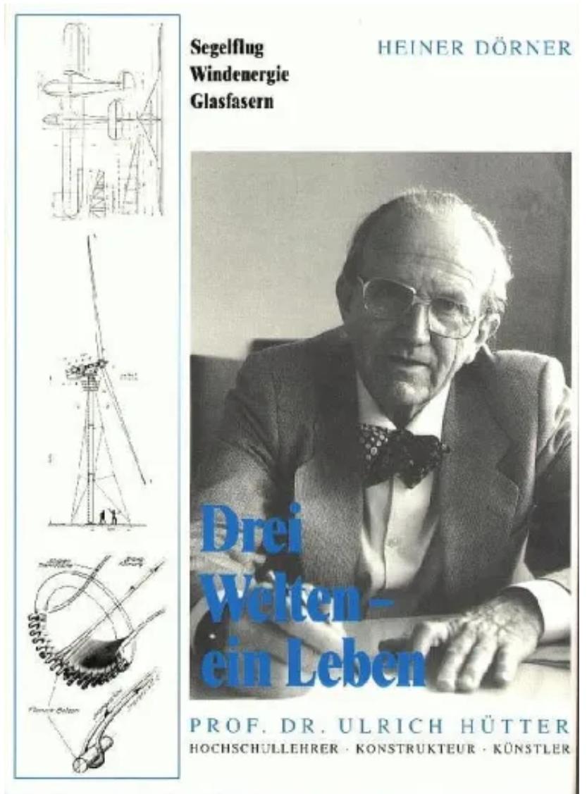 风电先驱乌尔里希·胡特博士(Prof Dr-Ing Ulrich Hutter,1910-1990)与兄弟沃尔夫冈一起,1930年代在维也纳从事高性能滑翔机设计并在航空业崭露头角。1936 年,乌尔里希转入斯图加特的技术学院, 主修航空技术,1942年在维也纳理工学院获得博士学位。在此期间他在最早的风电公司Ventimotor 有限公司兼任设计师,并开创了关于风电基础设计的“胡特风转子理论”。