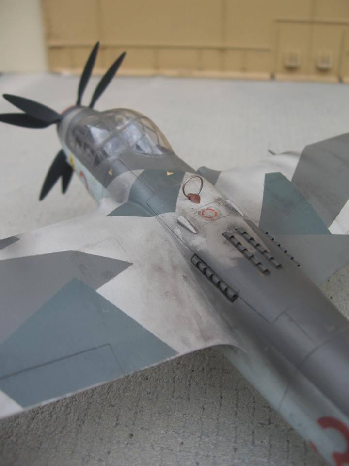 三名机组人员坐在机头传动轴上方的非常独特的非对称驾驶舱内,包括飞行员、领航员以及座椅向后的尾炮手。尾炮设计也很独特,单管20mm机炮位于V型尾翼中间,可在两个自由度转动,由炮手遥控发射。另一门前向火炮位于螺旋桨转动轴内。