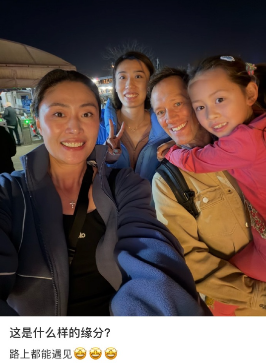 从网上流出的合影来看,和马蕴雯随行的,还有她的外籍丈夫雷特和混血女儿Everly。走在路上都能偶遇,这着实让马蕴雯和王媛媛感到惊喜。马蕴雯一家三口和王媛媛自拍合影,记录下这个难忘的时刻。两代女排女神同框笑靥如花,6岁的混血小公主Everly活泼可爱,十分抢镜。