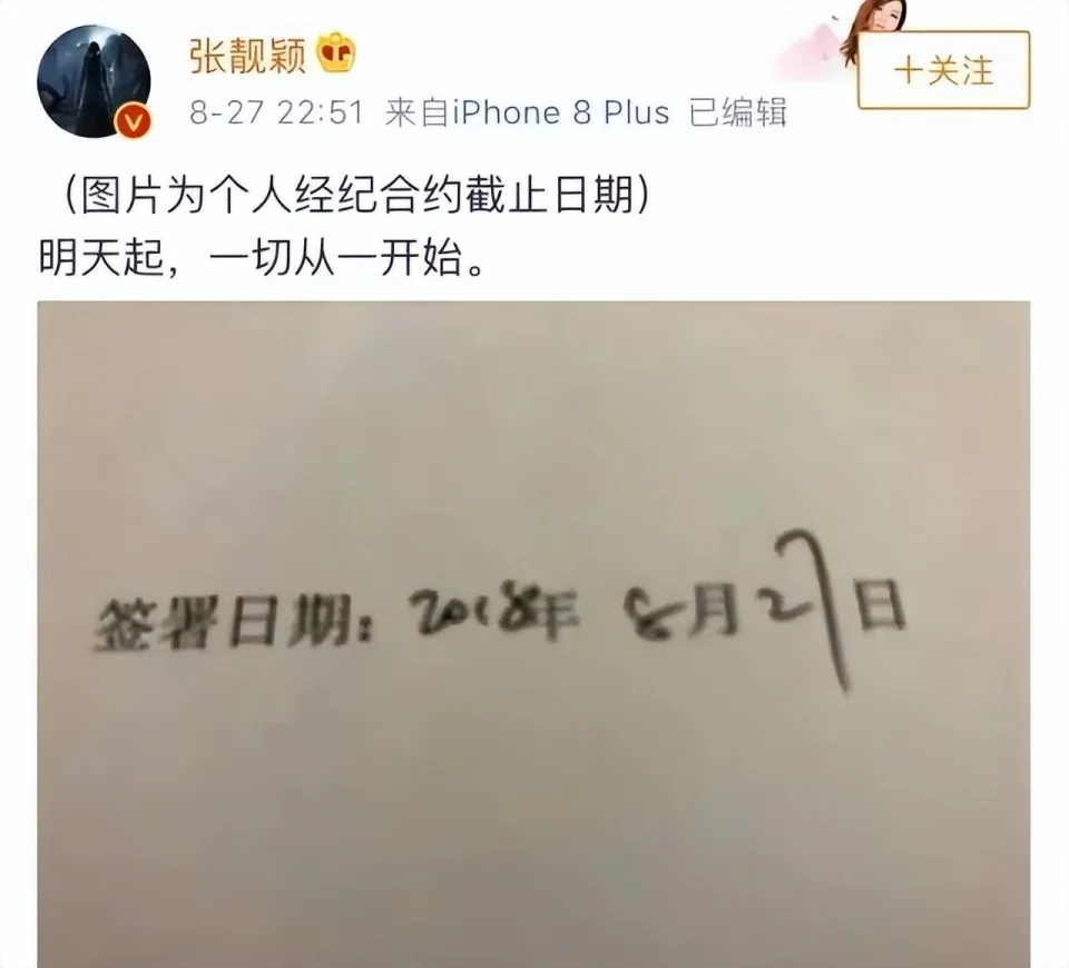 2018年8月27日,她发文,晒合同,宣布离开少城,一切从头。