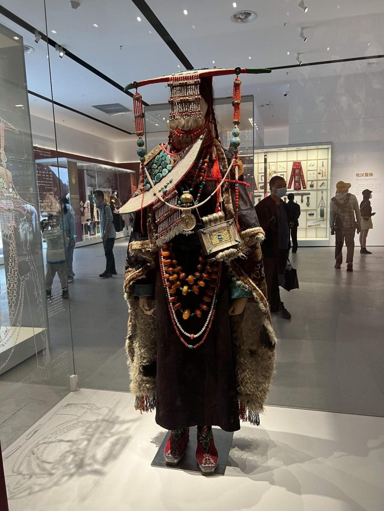 博物馆可能更加注重给参观者普及藏民族的社会生活特色,服饰文化就占据展览的很大一个部分,也让参观者按照藏族人民不同地理位置了解不同的藏族服饰。只是 西藏 博物馆里面的藏族服饰只展示了 西藏 地区的藏族服饰,缺少 云南 四川 青海 甘肃 等地的藏民族服饰,是不是也有点地域局限性。