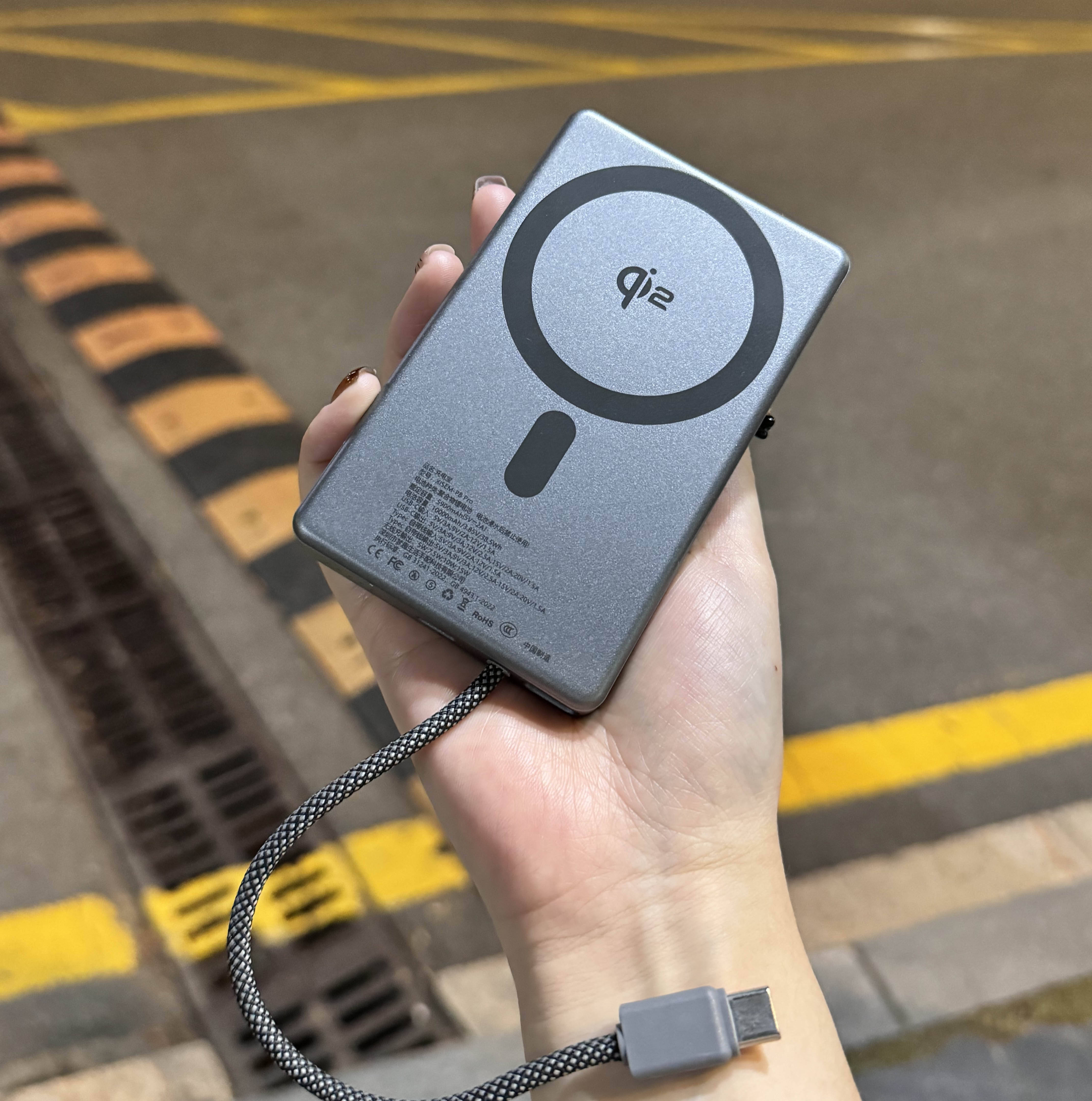 配置方面也挺靠谱,10000mAh 的电池容量,额定容量 5800mAh,日常通勤给手机充个一次多完全够用。22.5W 的主流功率,应付日常补电速度不拖沓,应急回血很省心。搭载了7重安全保障加 360° 安全守护,充电时不用担心安全问题,用着特别安心。还有9N 吸附能力的磁吸充电功能,随手一贴就能充,对懒人来说太友好了。不过有个小细节得提一嘴,磁吸充电虽然方便,但要是手机没带磁吸壳或者磁吸配件,就得额外准备,多少有点受限