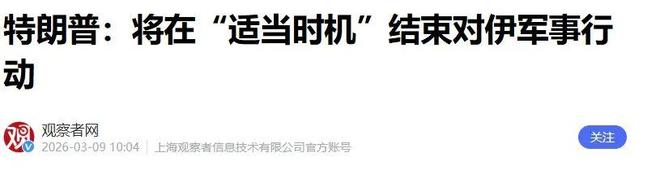 3月8号,特朗普试探性地说,将在“适当的时机”结束对伊朗的军事行动。