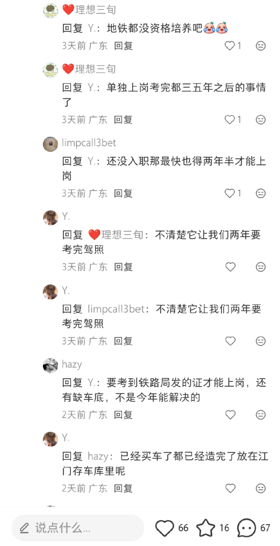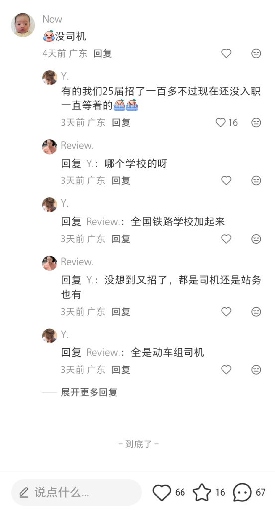 某书有网友称,广东城际通过校招,从全国铁路学校应届生里招了足足一百多号动车组司机。