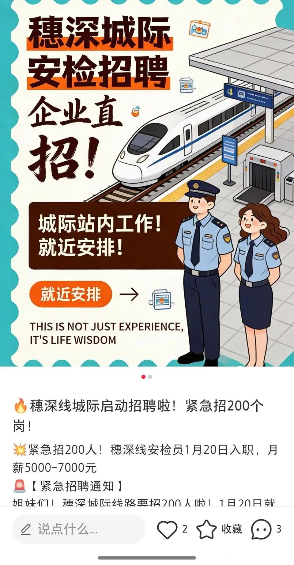 其次,多个小红书博主都开始代招穗深城际安检员,而且写明1月20日入职。