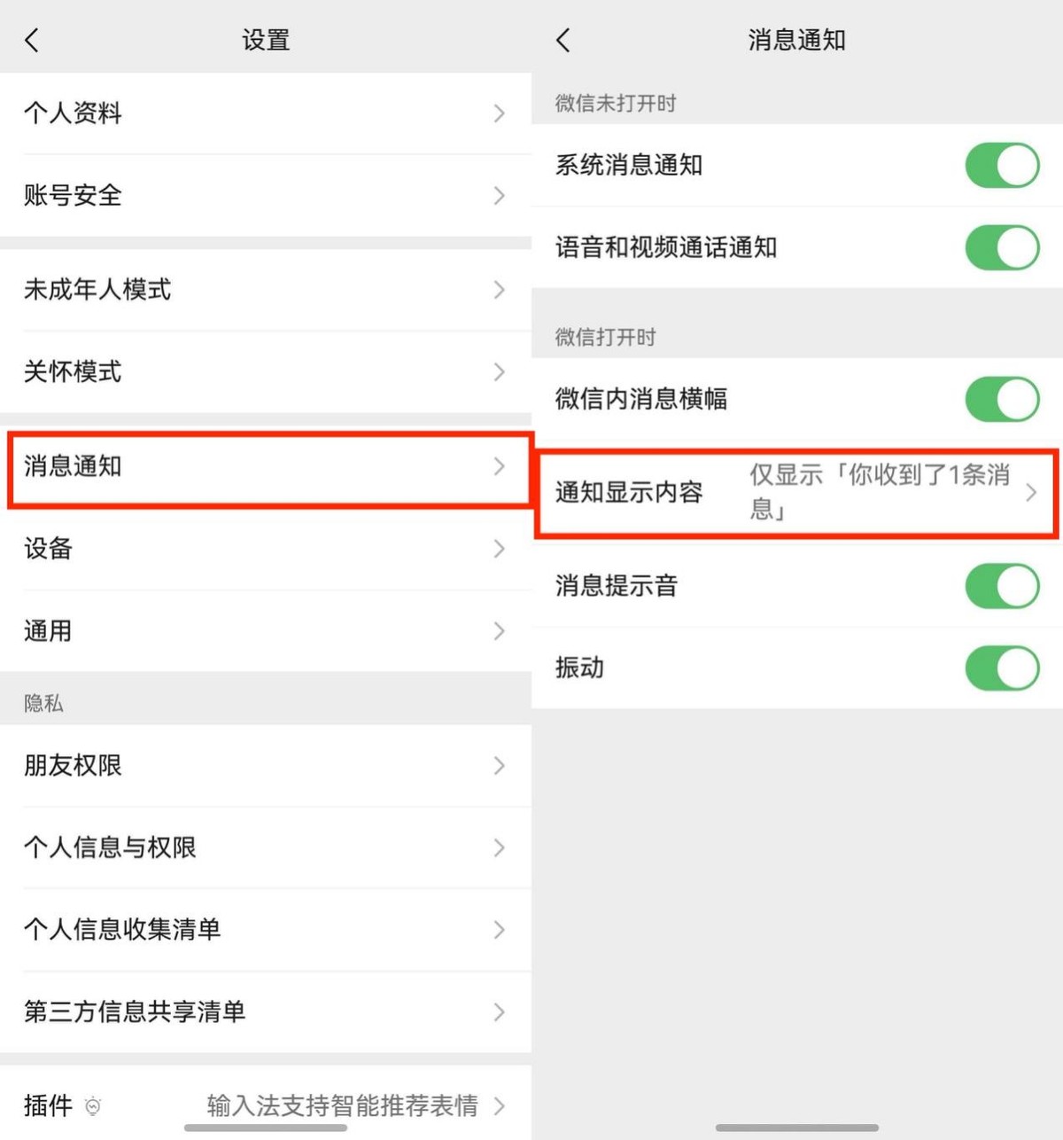 聚会时担心消息内容被别人看见?鸿蒙也能帮你安排妥当。可以去微信里设置:打开微信,点右下角:我>设置>消息通知,找到“通知显示消息详情”。我一般选择“仅显示「你收到了1条消息」”,这样就平衡了消息的及时性和隐私安全。当然这是针对打开微信的情况。如果不想在未打开微信时被人看到微信消息,可以去修改系统设置:设置>通知和状态栏>横幅通知,将“显示横幅通知内容”改为“仅机主注视时”,万一有别人看你的手机,通知内容就会智能隐藏,安全感瞬间拉满。