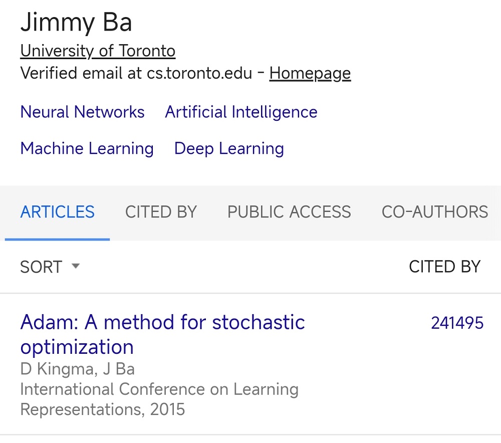 Jimmy Ba是一名加拿大籍的华裔AI研究员,他因2014年与他人合作开发Adam优化器而声名鹊起,该算法已成为训练AI模型的标准工具之一,在谷歌学术上,Adam论文的引用量超过了24万次。