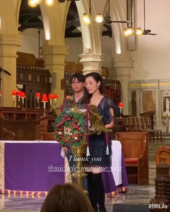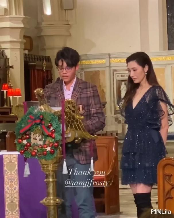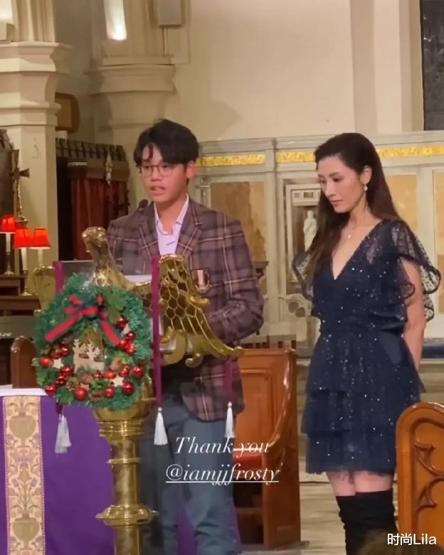 李嘉欣香港教堂会现身,高筒靴+纱裙潮如小姑娘,12岁儿子就有175高