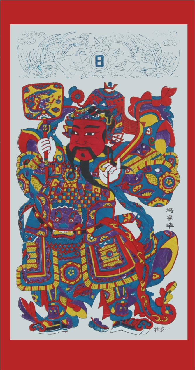 △版刻春秋画里新年潍坊杨家埠木版年画全国巡回展在吉林市美术馆开幕。《大门神》作品。