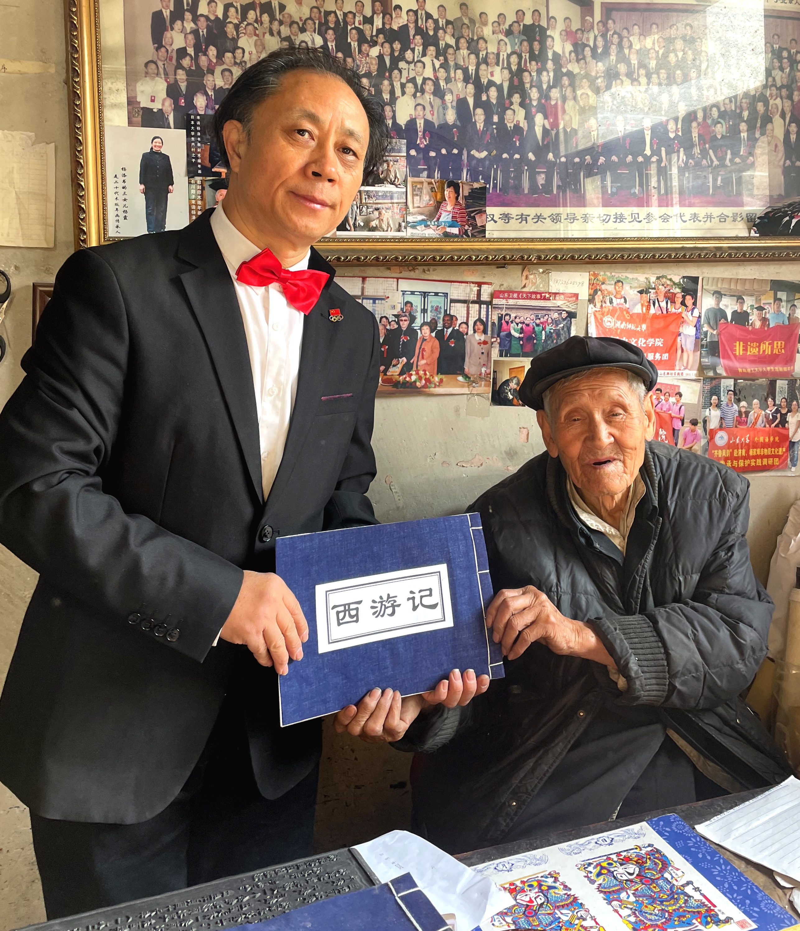 △潍坊杨洛书木版年画艺术陈列馆馆长张大功向吉林市美术馆捐赠他收藏的杨洛书木版年画《西游记》作品。