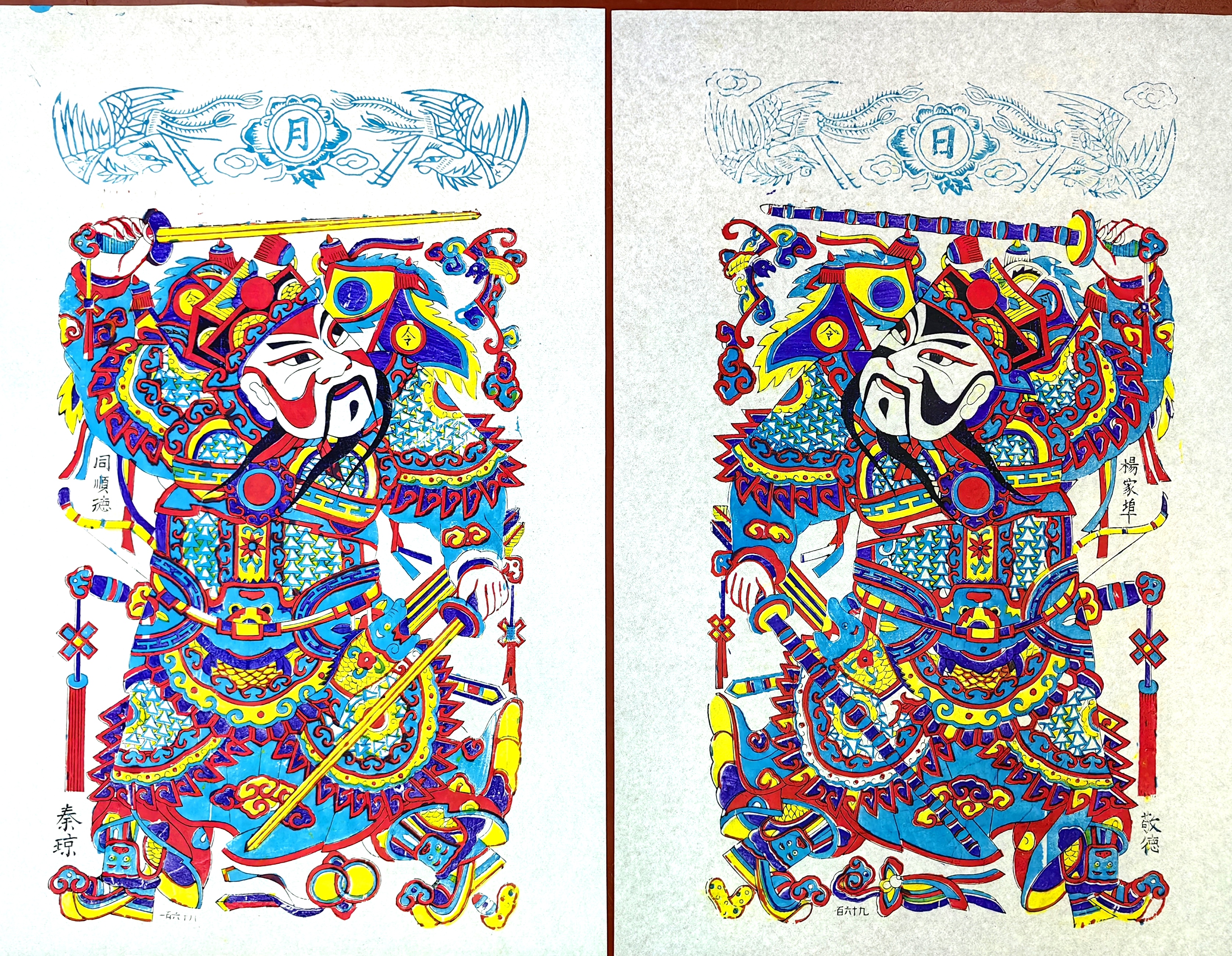 △潍坊杨洛书木版年画艺术陈列馆馆长张大功向吉林市美术馆捐赠他收藏的杨洛书木版年画《秦琼 敬德门神》作品二幅。