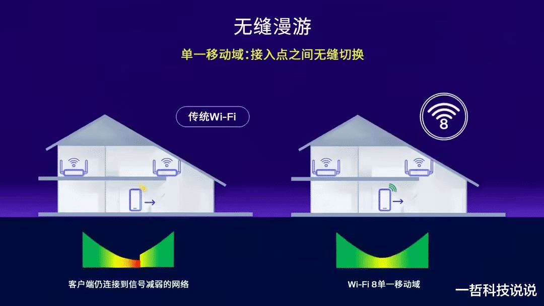 这个怎么理解?就是你拿着手机在家里到处走,或者在公司从会议室溜达到工位,Wi-Fi不会像现在这样突然断一下再重连,而是全程保持低延迟,数据包也不丢。