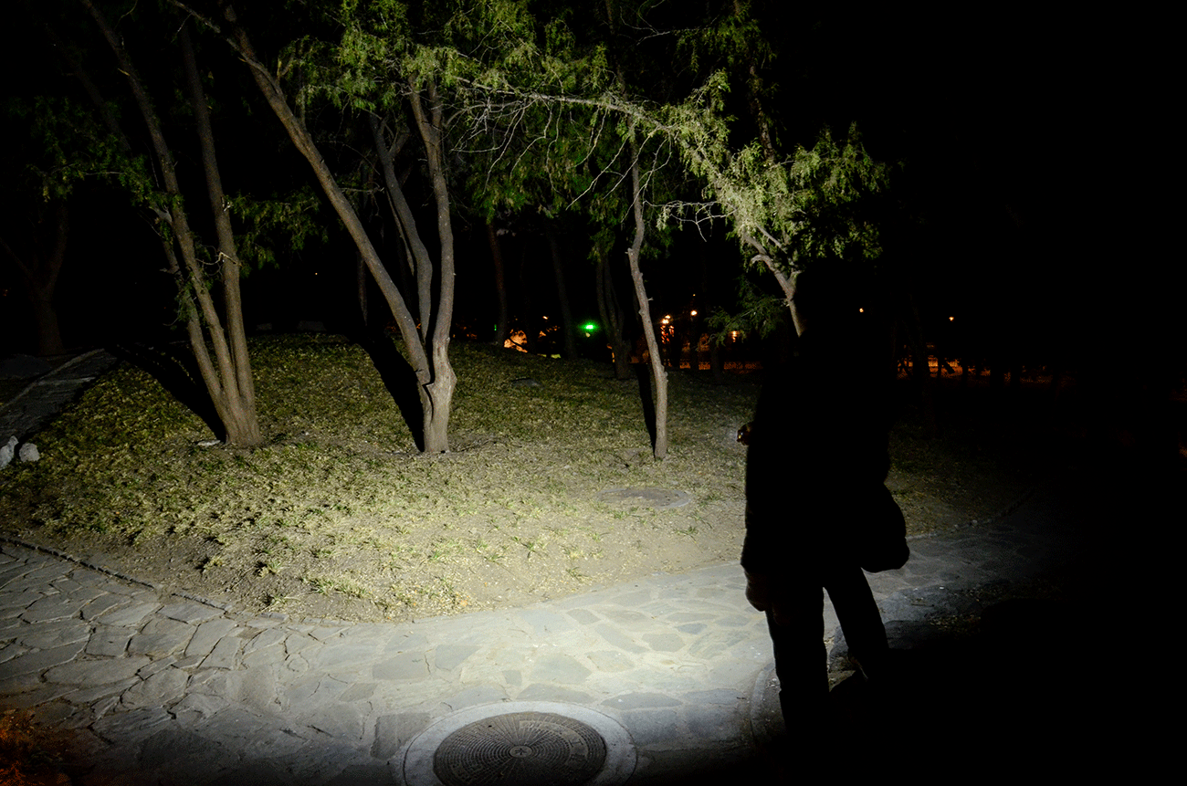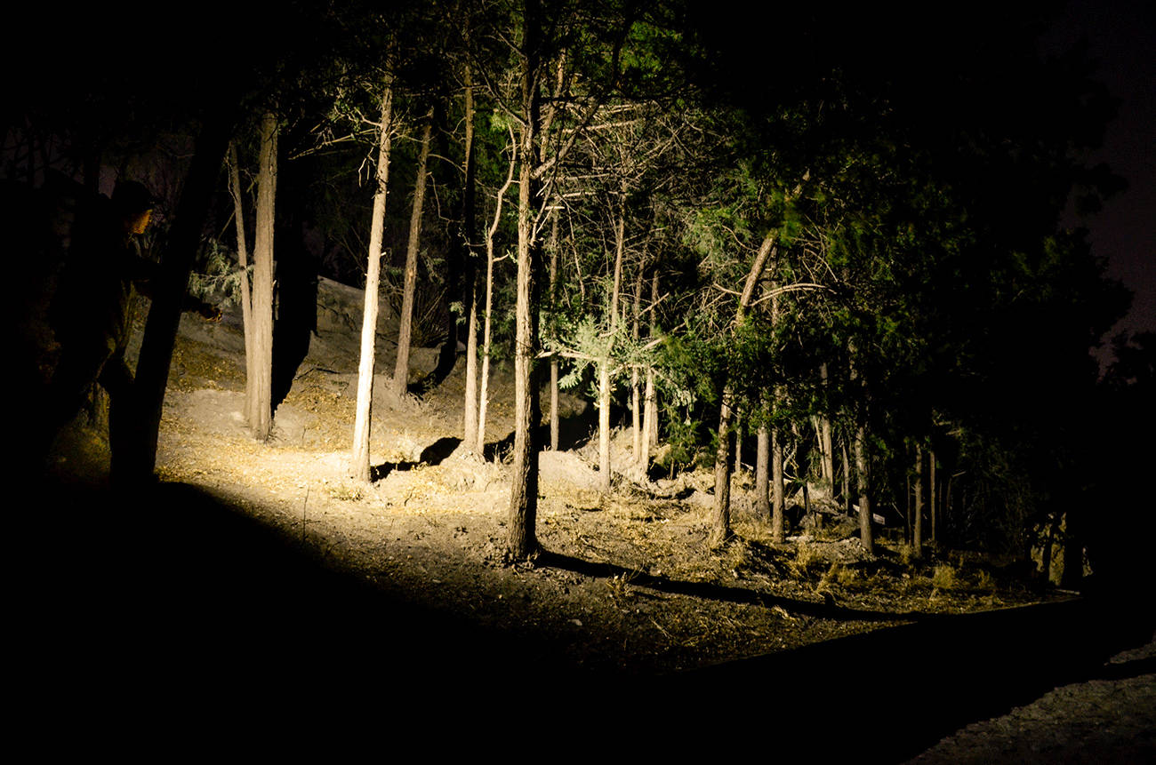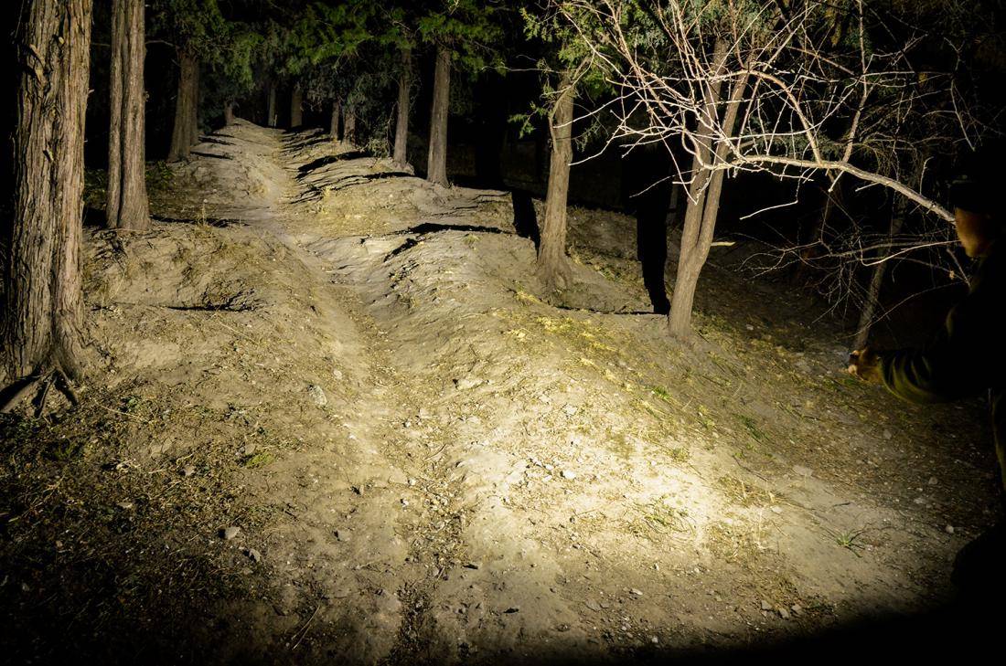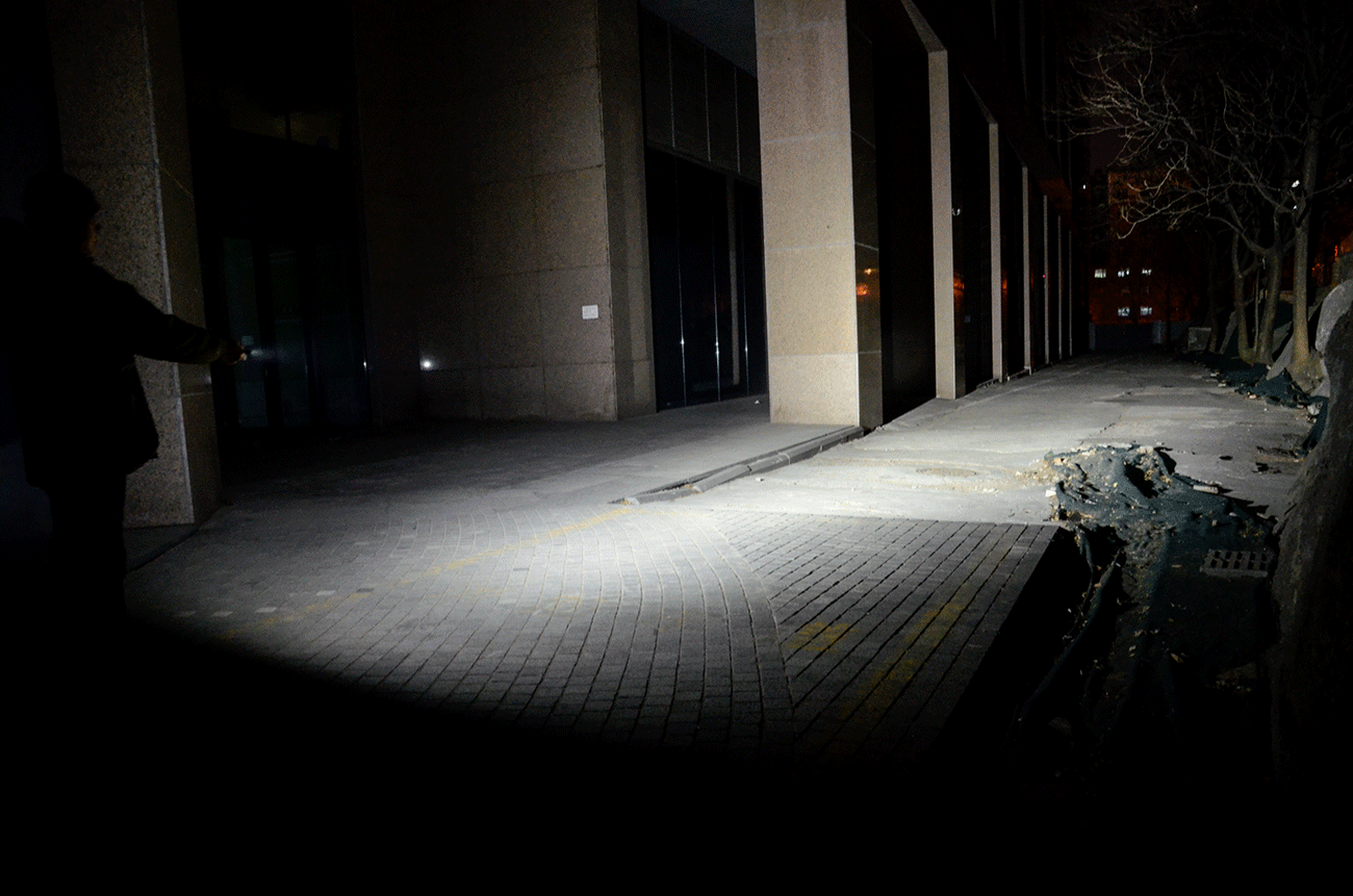 EDC07冷白光最大光通量为1500lm,中白光为1300lm,暖白光为1000lm,双眼+透镜,带来的是开阔的泛光照明效果,而且亮度均匀变化、过渡区域大,形成比较开阔的照明视野,面前的大面积都被照亮,具备良好的光线铺路效果,对于户外使用来讲很合适。