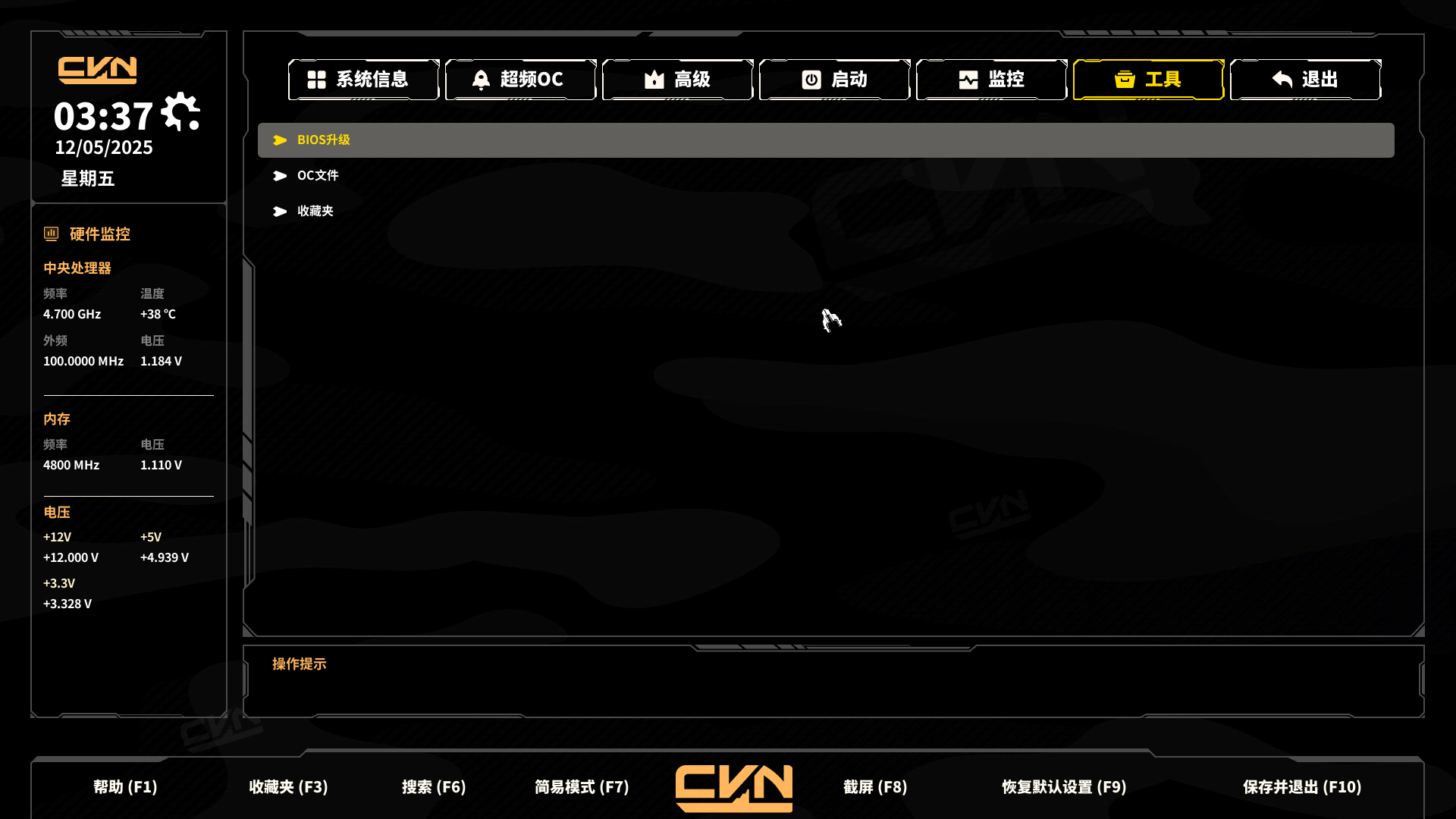 工具页面内包含了BIOS更新,超频配置文件存档以及收藏夹等功能。