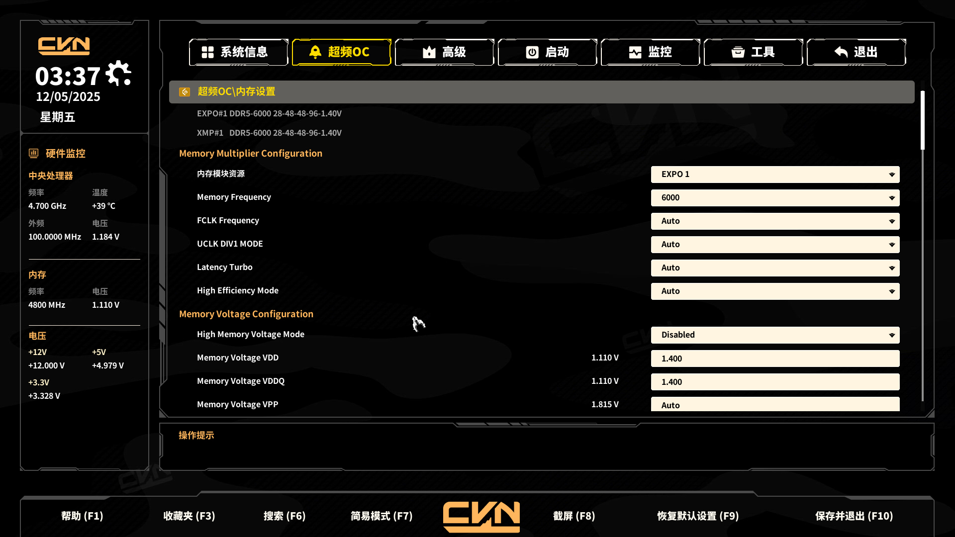 七彩虹BIOS经重构优化后,用户体验实现显著提升。默认加载EZ简易模式,采用扁平化UI设计,集成XMP/EXPO开关、智能超频、风扇控制等核心功能,界面信息呈现清晰直观,系统信息与硬件运行状态直观可查。新手用户亦可快速熟悉电脑硬件参数及基础配置,有效降低操作门槛。