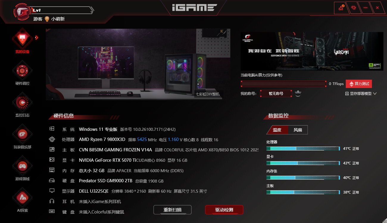 在软件控制方面,iGame Center作为七彩虹为游戏玩家打造的一体化硬件管理软件,集成实时监控、超频调校与灯光定制功能。