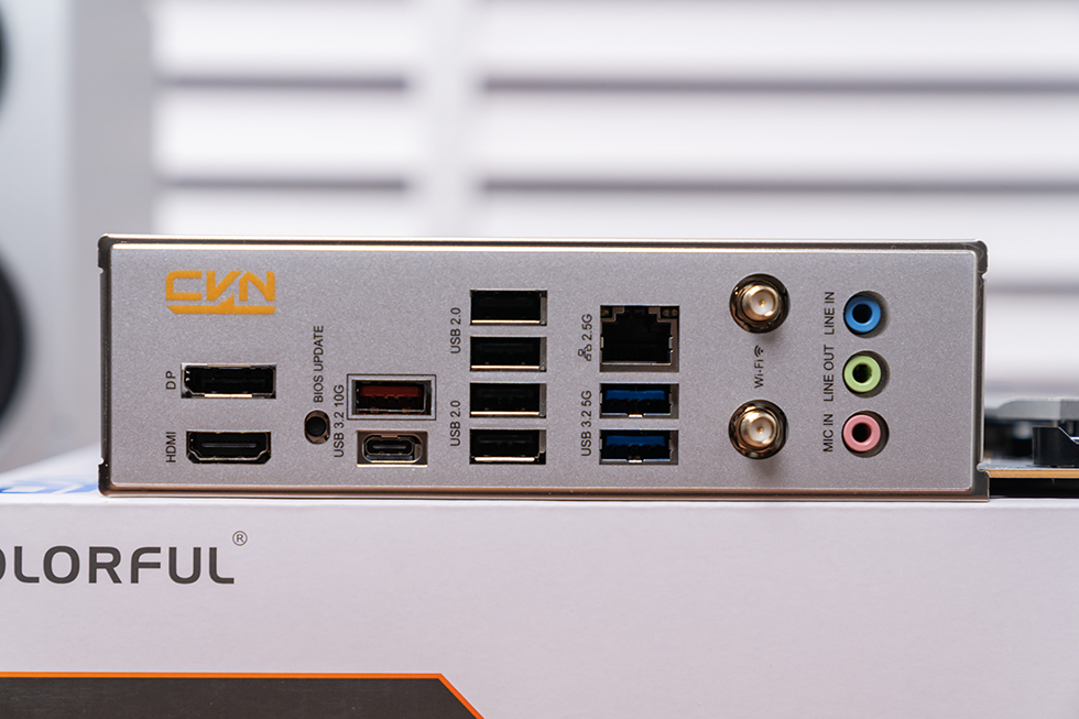 背部 IO 接口丰富,提供HDMI 2.0+DP 1.2 视频接口(支持 4K/60Hz 输出)、4个USB 2.0接口、2个USB 3.2 Gen 1 5Gbps Type-A接口、1个USB 3.2 Gen 2 10Gbps Type-C接口、1个USB 3.2 Gen 2 10Gbps Type-A接口、2.5Gbps 网口、WiFi 天线接口、光纤音频接口及 3.5mm 音频接口。同时配备 BIOS UPDATE 一键升级键,无需开机即可更新 BIOS。