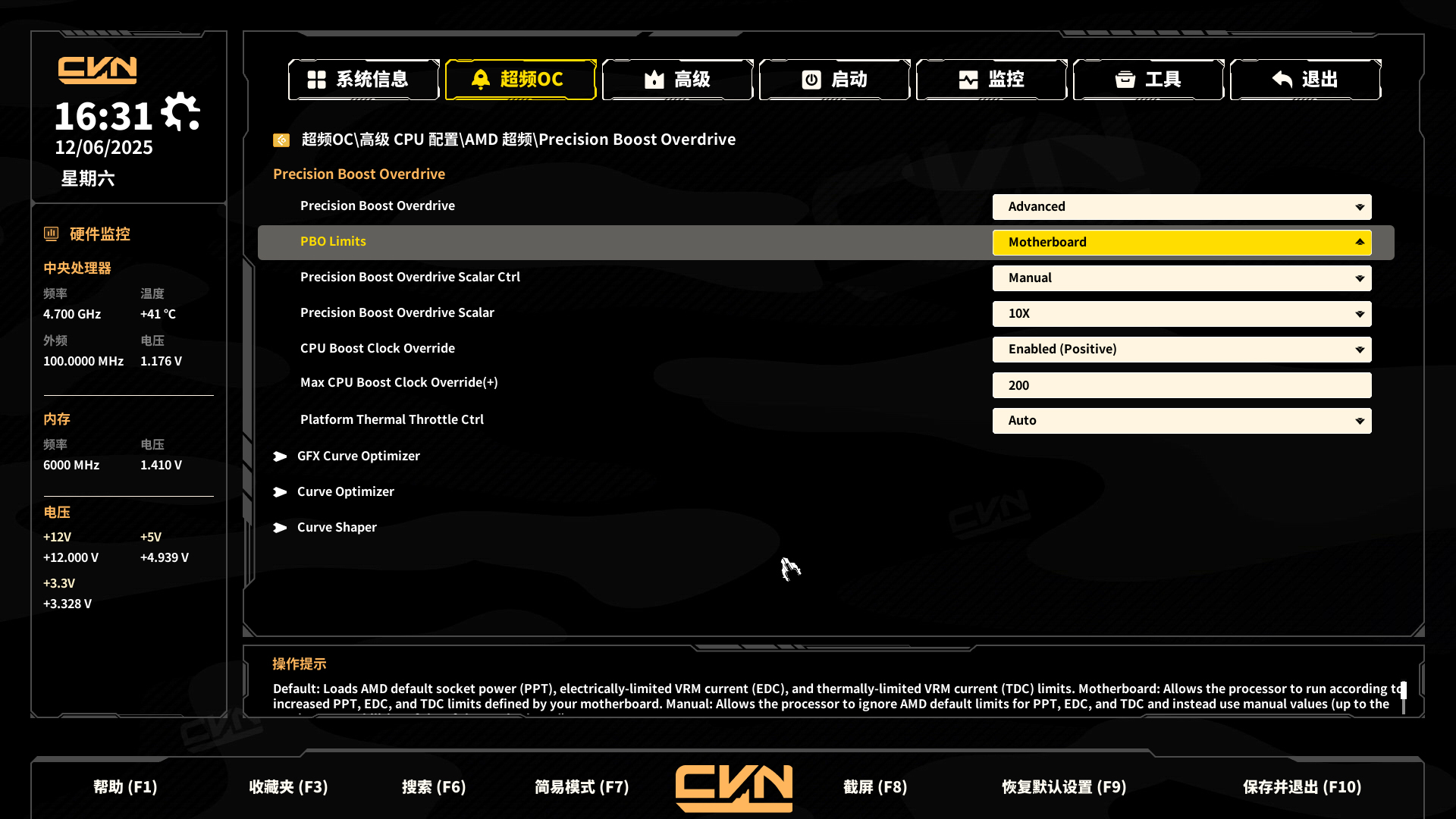 当然,对于AMD的PBO设置也是必不可少的,用户可以根据自己的使用场景和CPU体质进行设定。