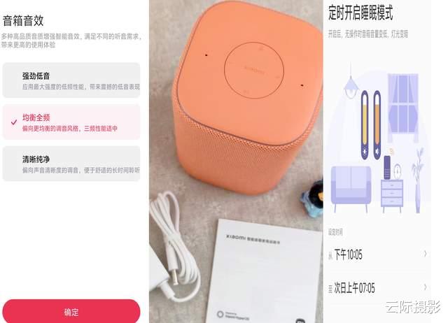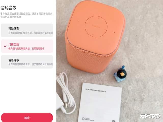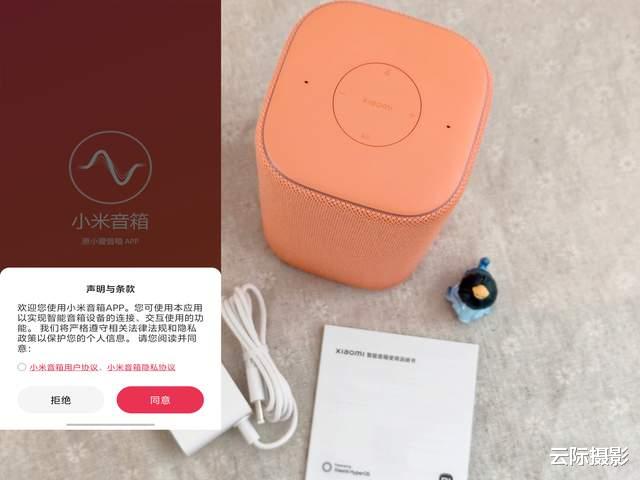 配件方面,包含音箱主体、电源适配器和使用说明书。首次使用直接开箱后直接连接电源,再根据说明书下载APP即可。