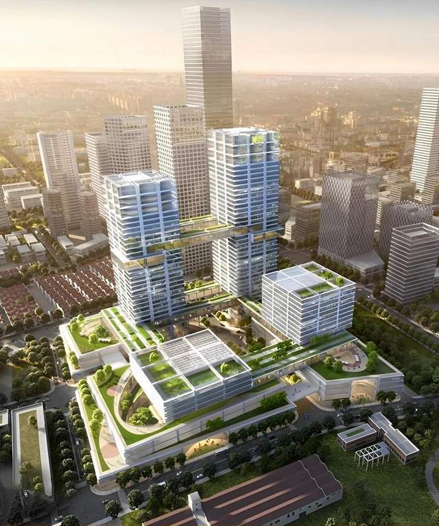 建筑方案以“科技模块”为核心设计理念,由4座高层塔楼组成,分别为A塔楼(180米)、D塔楼(150米)、B塔楼(75米)和C塔楼(50米)。