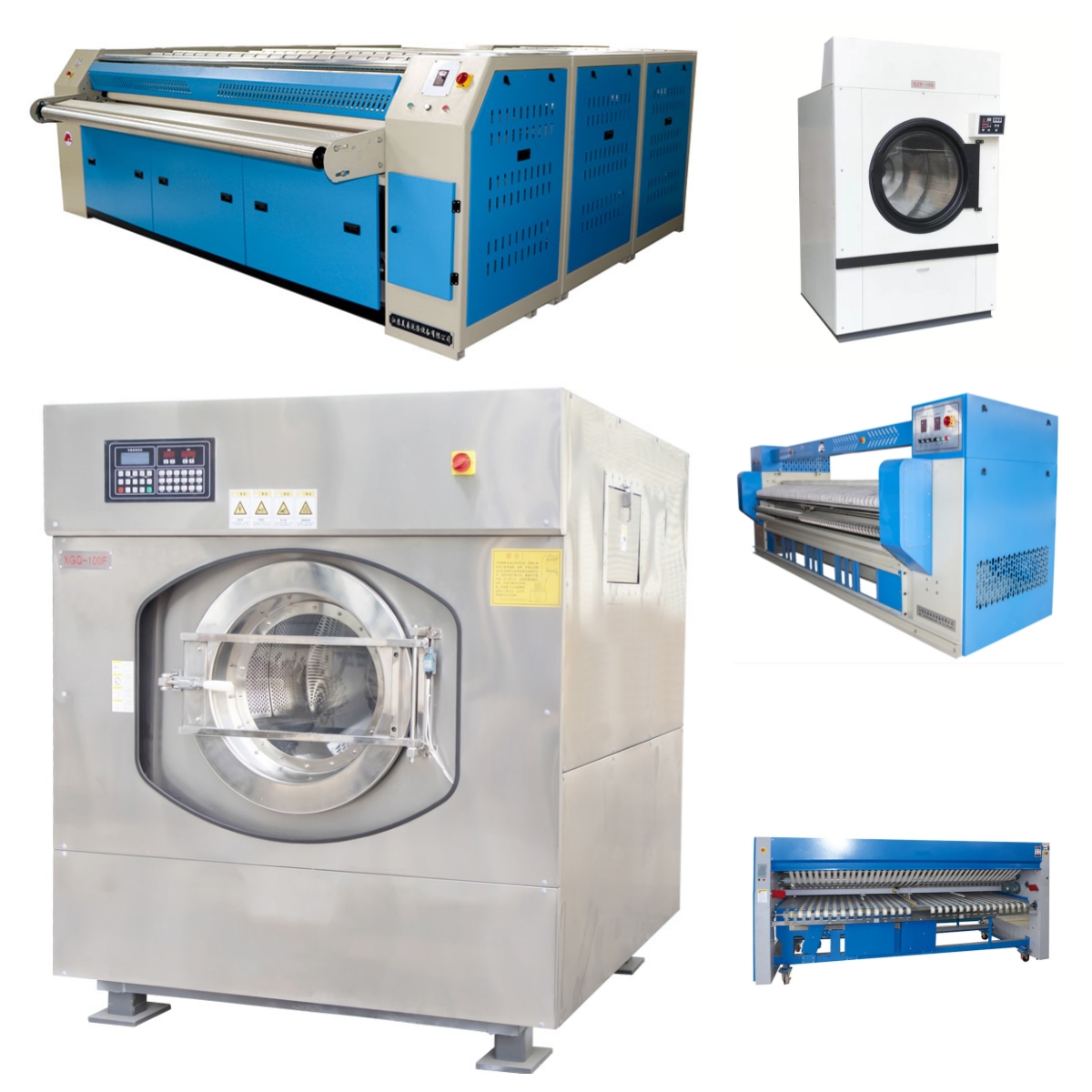 工业洗脱机与烘干机:核心零部件选用国际知名品牌,集成变频调速与热能回收技术,洗净度高且脱干含水率低,配合工业节能高效烘干机的智能温控系统,大幅提升洗涤烘干效率,是洗涤厂、中央洗衣工厂的核心生产设备。