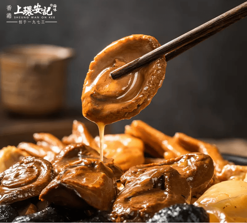 盆菜,源于客家人传统的“发财大盆菜”,寓意“盆满钵满”,是粤府文化中的年味符号。而决定盆菜鲜美程度的,莫过于其中的灵魂鲍汁。鲍鱼系列一直是上环安记拳头产品,据尼尔森公司研究报告显示,安记多年為香港鮑魚销量第一。