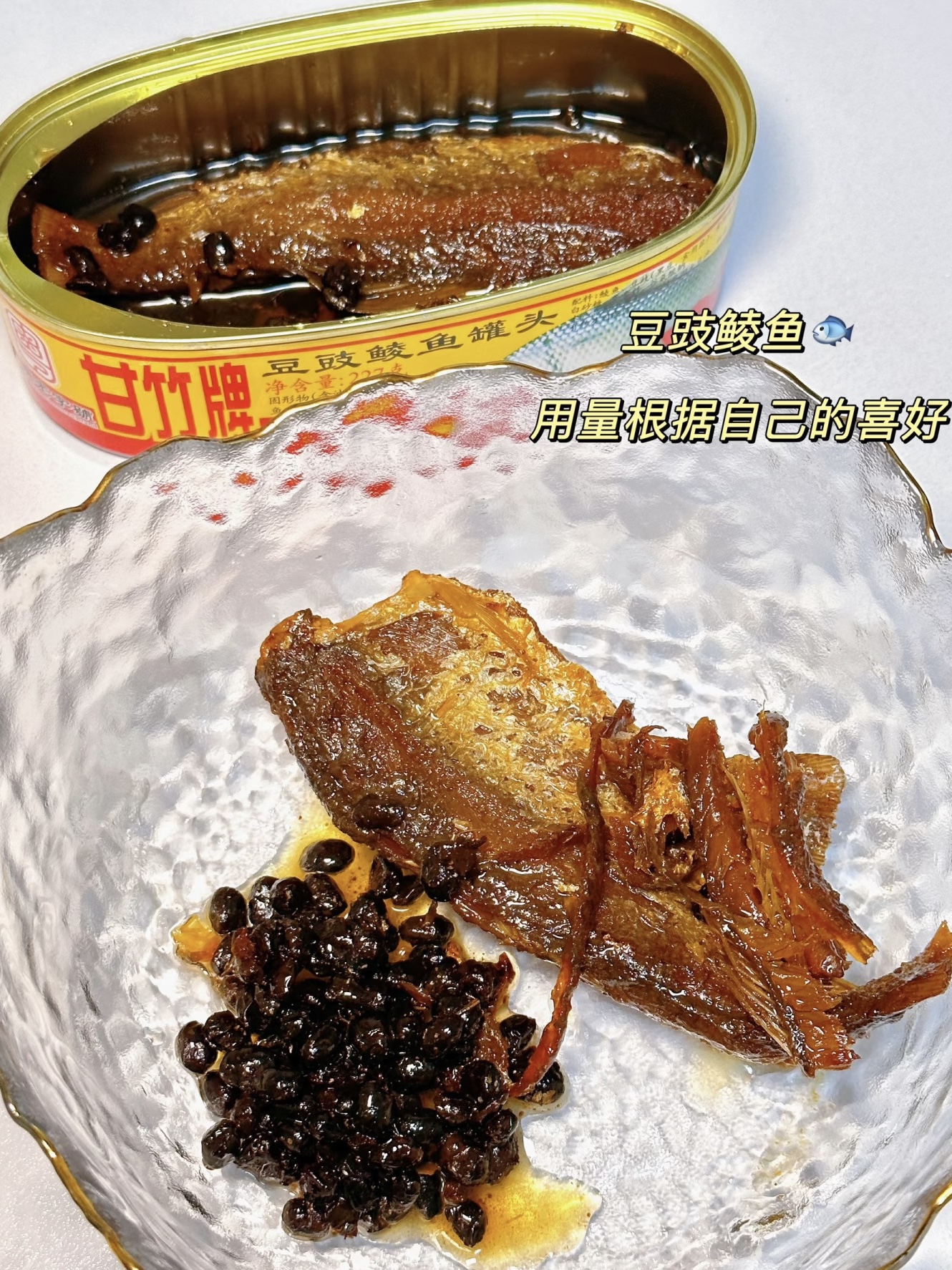 豆豉鲮鱼罐头一罐,把鱼肉撕成小块,像一片片“小鞭炮”,既易炒香又保持酥感;豆豉留用,负责提香;蒜3瓣拍碎,负责提香;小米辣1根切圈,负责提辣;不吃辣可换成甜椒圈,留色不留火。