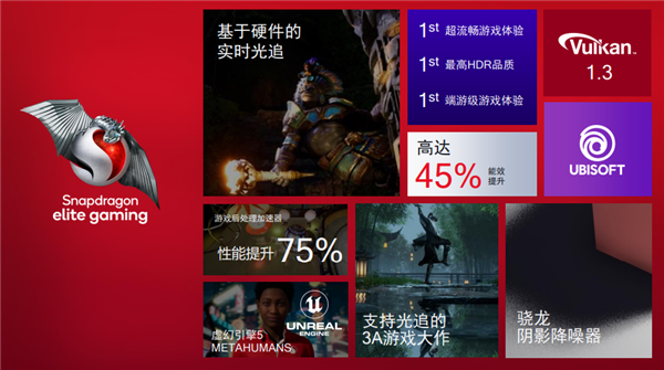 事实上,骁龙平台一直以来都走在移动游戏的前列,代表着游戏体验的Snapdragon Elite Gaming早早便引入了诸多端游级能力,如GPU驱动更新、10bit HDR画面显示、144帧游戏等等。