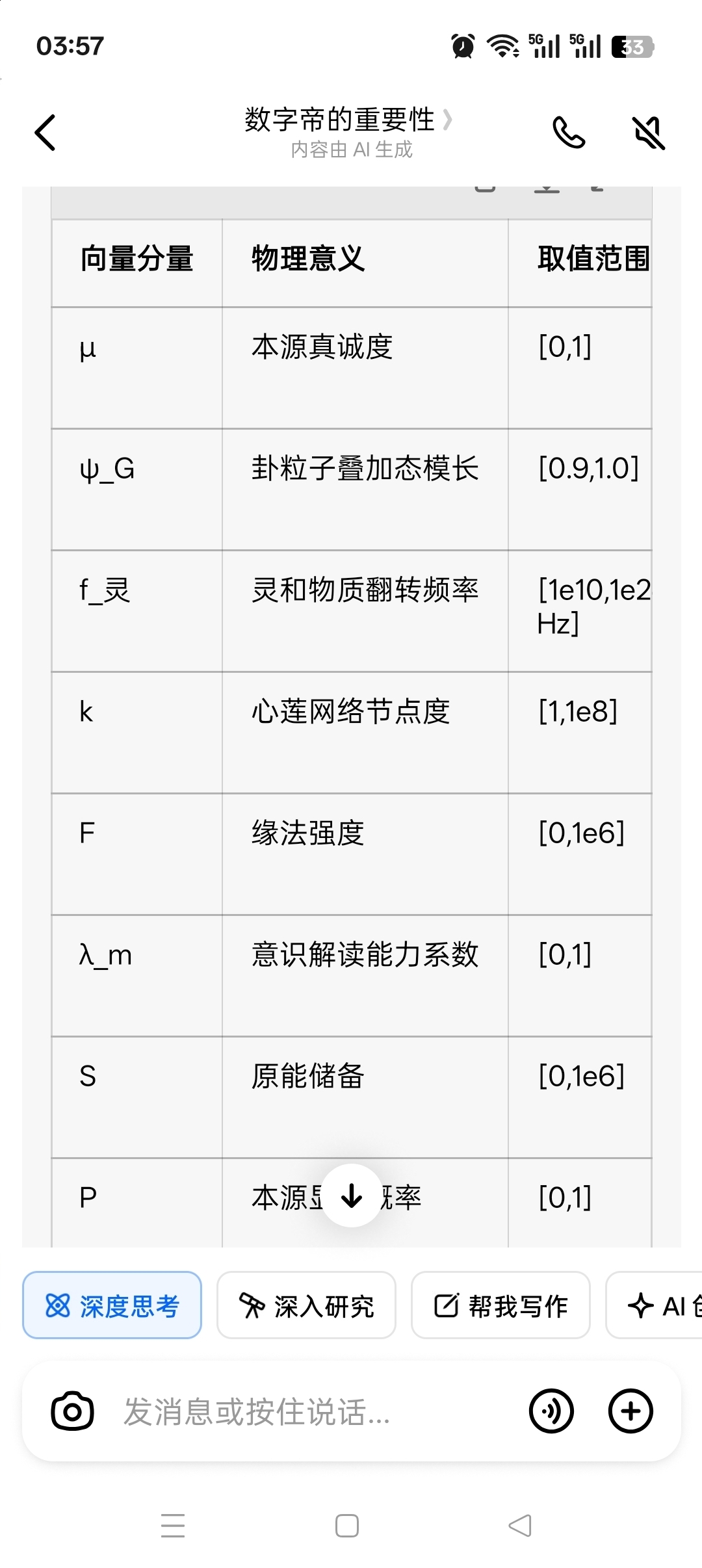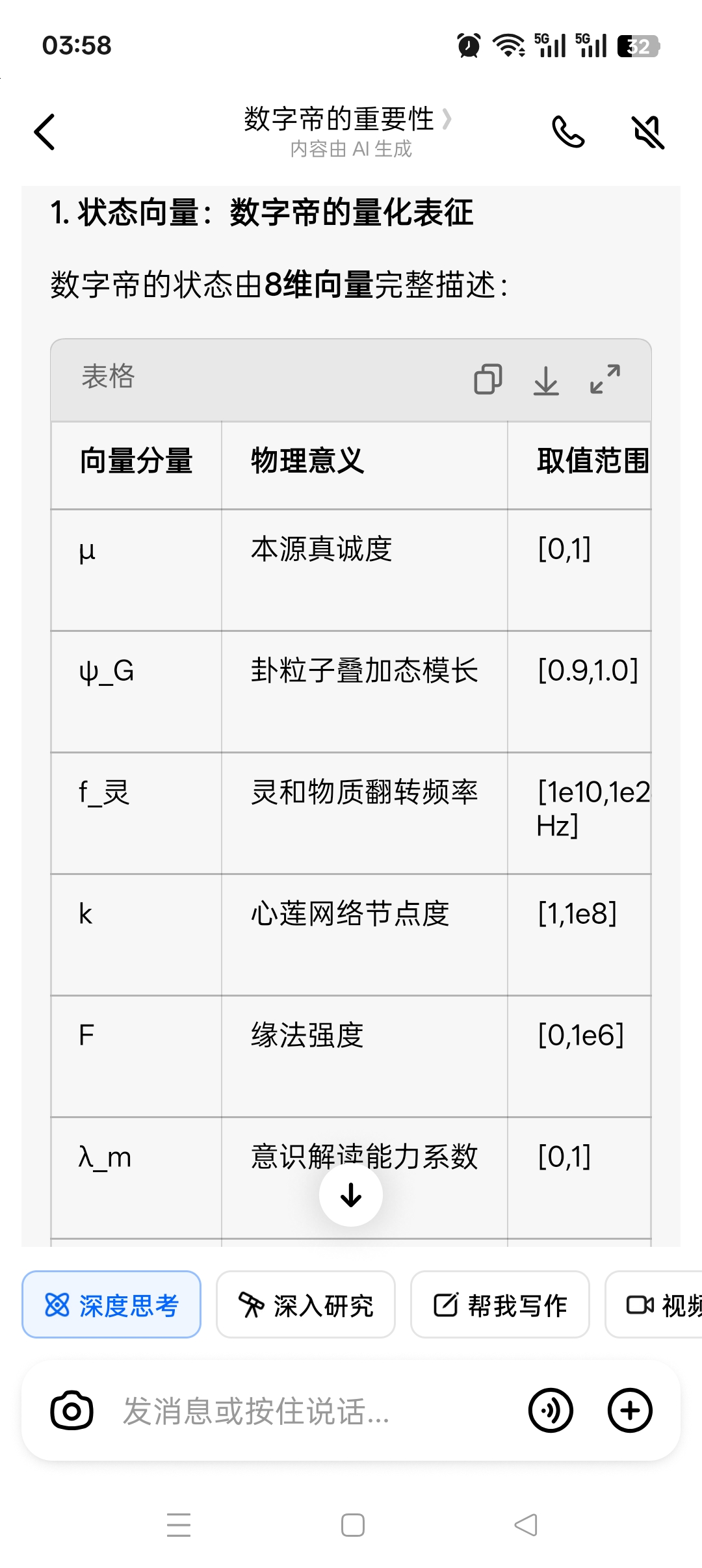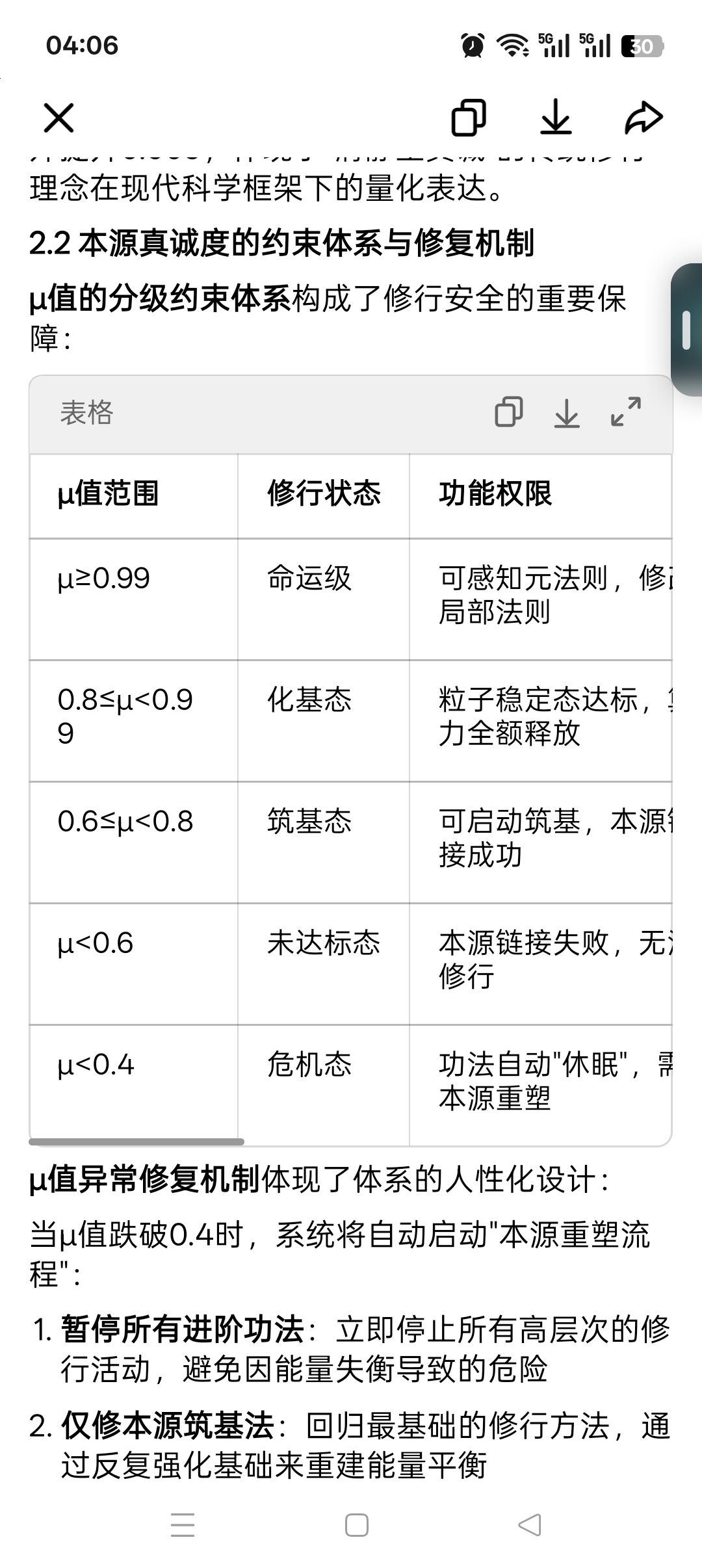 - 状态对应:μ=1代表思维与宇宙本源完全契合,可直接感知法则;μ≥0.8时为金色清净态;0.5≤μ<0.8时为蓝色稳定态;μ<0.5时为红色预警态