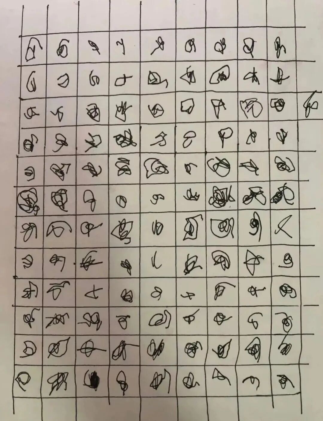 15.请问,这是字吗?这个小朋友最厉害的在于,这么多行字没有一个是重复的!!!