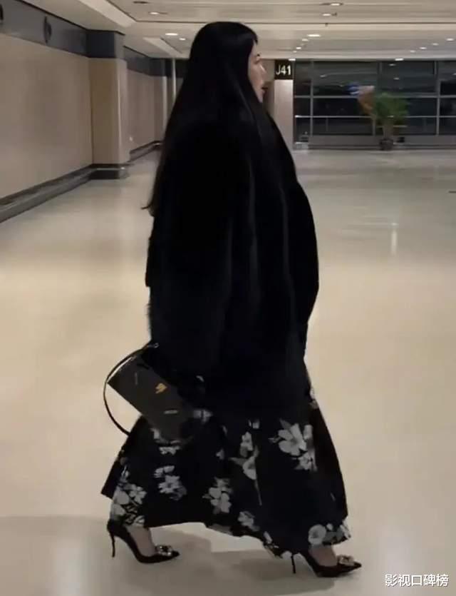 李湘穿着黑色貂皮大衣,很贵气,也很臃肿,从背影中看虎背熊腰。即使穿黑色显瘦,但是李湘穿在身上没有这种效果了。