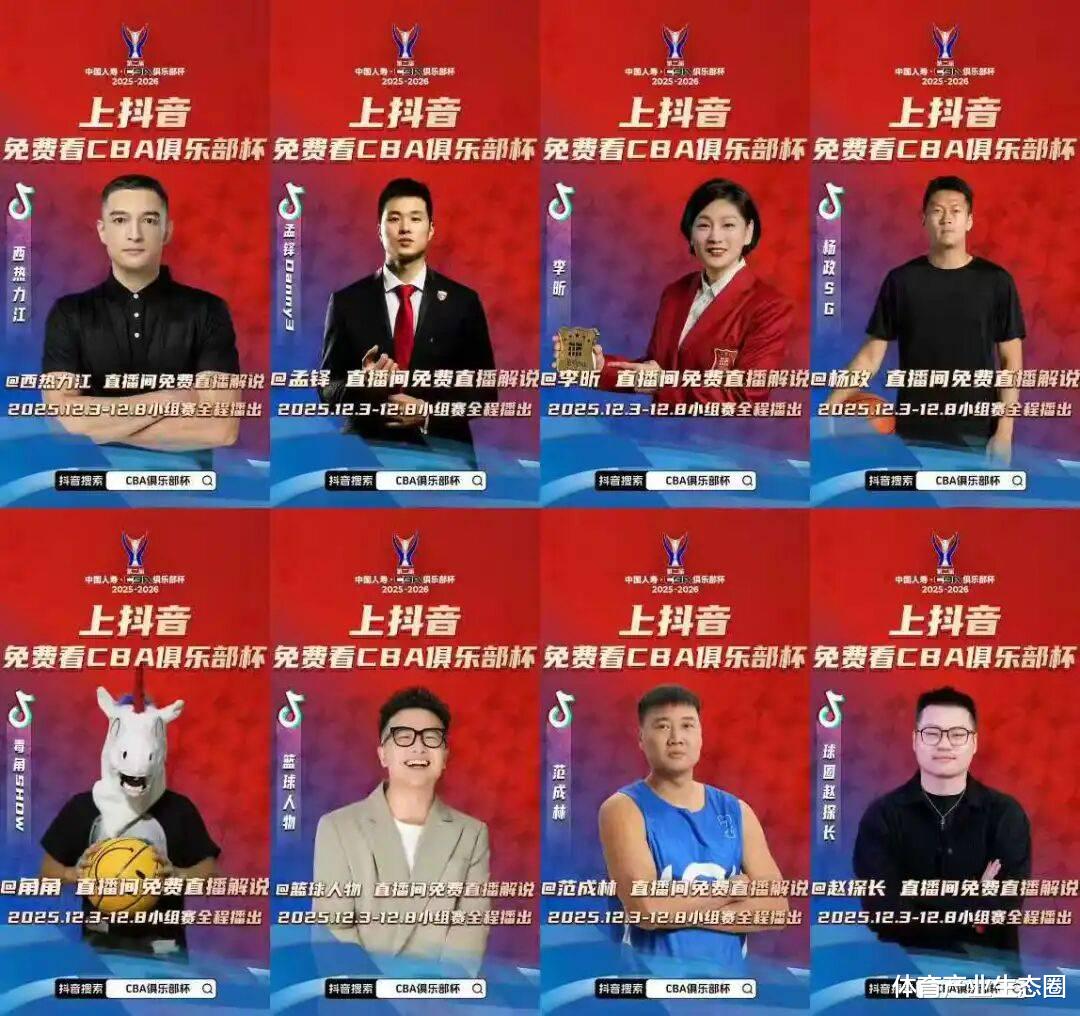 根据最新消息,12月3日至8日,抖音宣布将全程免费播出40场CBA杯小组赛,其站内球星与达人将在账号直播比赛内容,以及CBA官方账号将提供无解说清流直播间,并包括实时数据直播。
