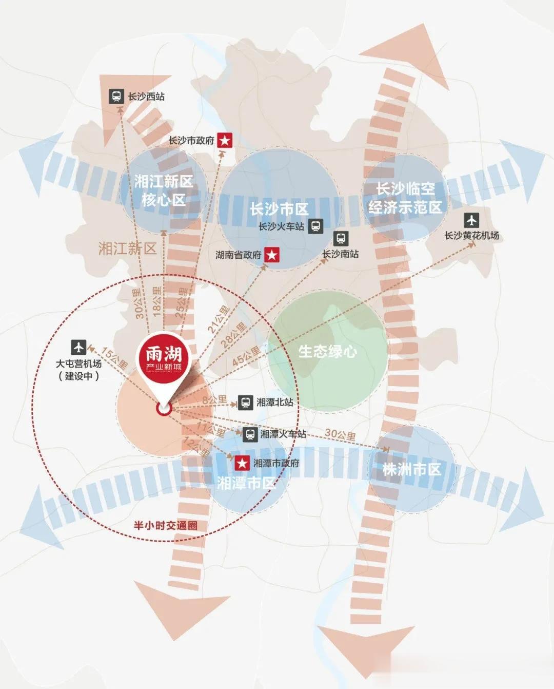 湘潭经开区鹤岭片区总规划面积13.5平方公里,地处长株潭一体化战略核心区,未来将打造成湘潭对接长沙的桥头堡、实施“湘潭向北”战略的主阵地,园区市场化专业化改革的先行区。