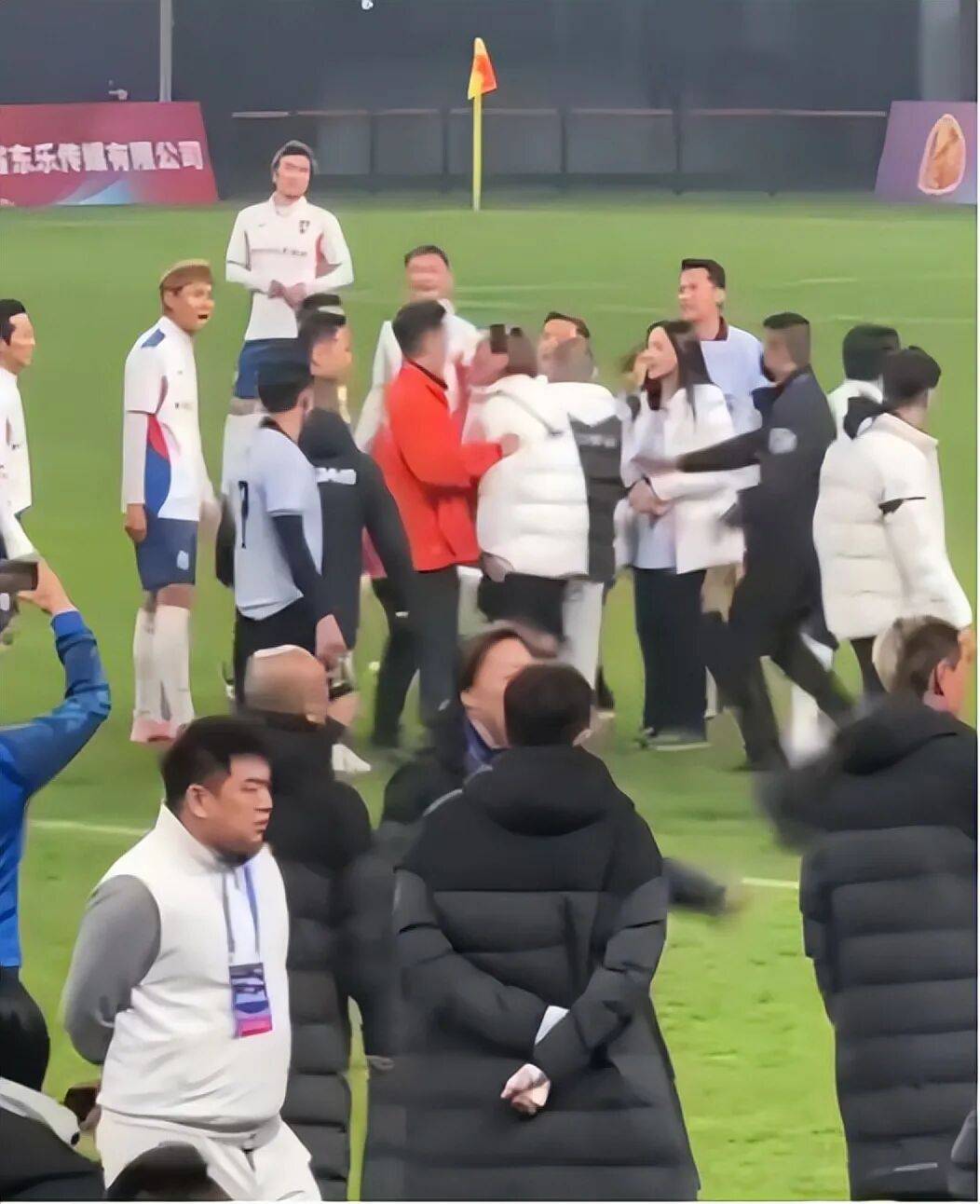 歌手吴国敬更是直接冲入球场内,情绪十分激动,令双方再次剑拔弩张,最后需要很多人合力才能将彼此拉开。