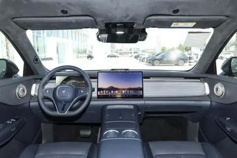 内饰设计延续简洁风格,主色调采用温馨的黑灰与米色搭配。中控台及车门内饰广泛使用软质包覆材料,触感细腻,做工精致。液晶仪表盘清晰展示车速、电量、续航等关键数据,辅助驾驶信息通过29英寸AR-HUD抬头显示投射到前挡风玻璃,避免驾驶员低头查看中控屏,显著提升驾驶安全性。中控配备15.05英寸OLED曲面滑移触控屏,支持横向平移设计,主驾、副驾及后排乘客均能畅享流畅独立操作体验,实现娱乐与导航的清晰分区。搭载鸿蒙座舱5系统,集成高通骁龙8295芯片,应对多任务处理游刃有余,响应迅速。语音控制支持多方言和连续对话,准确率高,大幅简化车内操作流程。