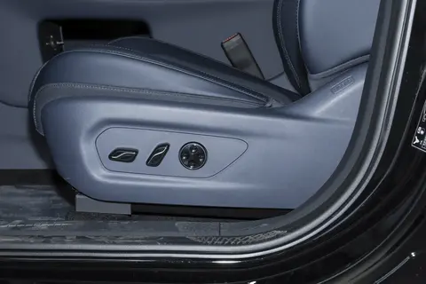 座椅设计充分考虑老人及儿童的生理特点,采用12层复合构造。外层覆盖透气且具降温效果的竹纤维面料,即便夏季高温亦能保持舒爽,避免闷热出汗。中层含3厘米厚的慢回弹海绵,能精准贴合人体曲线,有效缓解腰椎压力,特别符合老人群体需求。底层采用交叉弹簧结构,均匀分散局部压力,降低路面颠簸带来的乘坐不适感。部分部位覆以DINAMICA仿麂皮,触感细腻柔软。全车接触面织物均通过欧盟OEKO-TEX®Standard 100认证,达到婴儿可用级别,环保且安心,适合家庭频繁出行。副驾驶座椅支持零重力设计,电动一键放倒至118度,配合腿托的随动升降分散体重,有效缓解长途乘坐疲劳。后排座椅靠背可在117°至127°间多段调整,满足不同年龄及偏好的乘客需求。中间座位特别设计了凹陷区,避免乘坐时劈叉的不适感。后排坐垫长度达到520毫米,比同级车型多出约3厘米,儿童腿部能完全放置,避免悬空晃动,确保舒适。全系四座均配备座椅通风、加热及按摩功能,夏季快速降温,冬季高效加热,按摩功能覆盖面积广,力道适中,有效缓解长途旅途中的疲劳,提高乘坐幸福感。