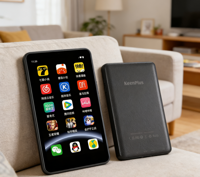 KeenPlus C5:基于深度定制系统,专注音视频核心体验,系统纯净流畅。屏蔽社交与信息流干扰,但保留如在线词典、知识播客、新闻阅读等提升型工具,实现"功能克制,体验专注"。