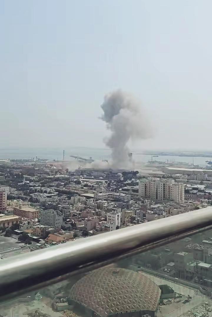 目前,位于巴林的美国海军第五舰队总部——贾法勒海军基地已经遭到伊朗轰炸,升起了滚滚浓烟!